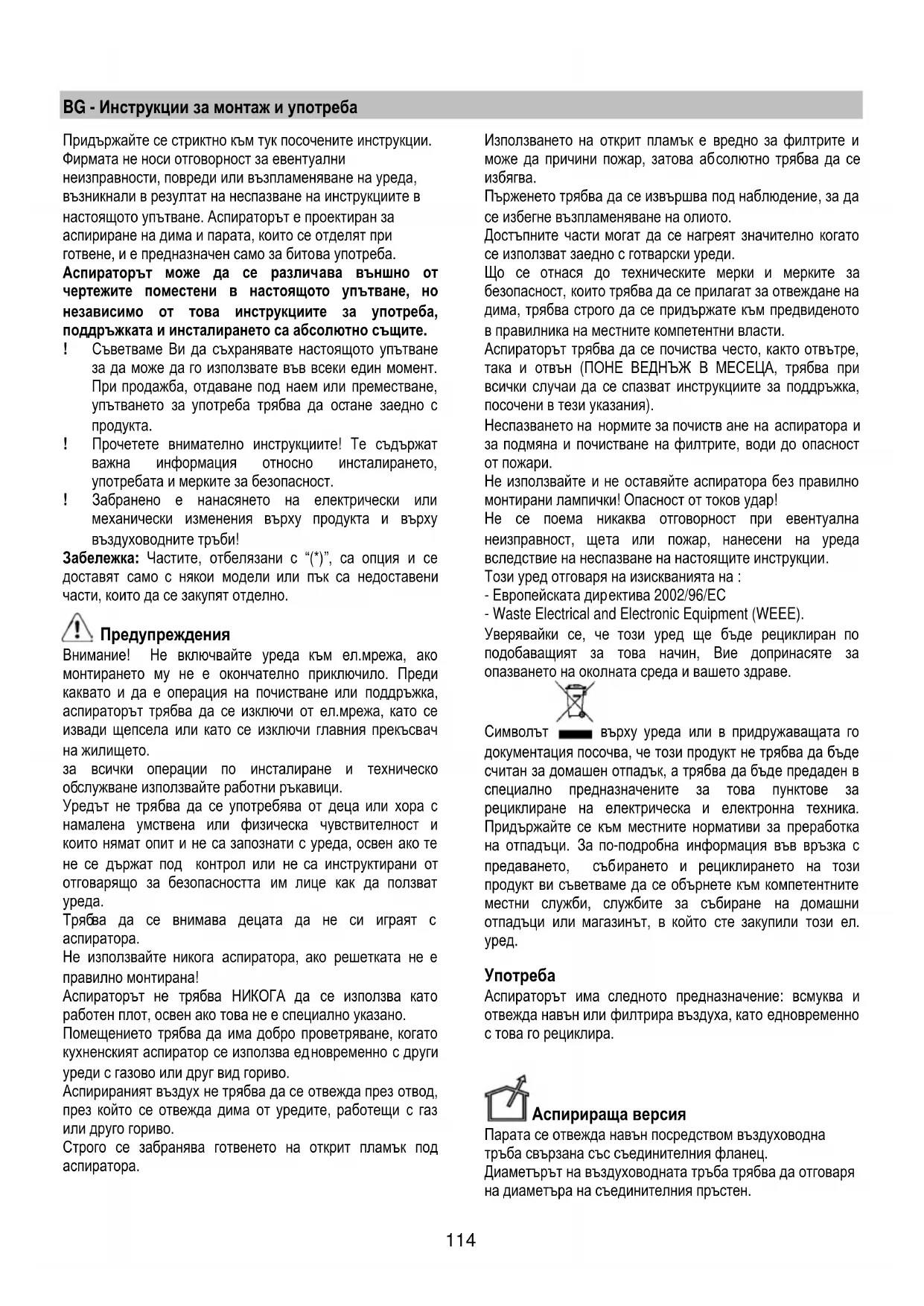 настоящото упътване. Аспираторът е проектиран за