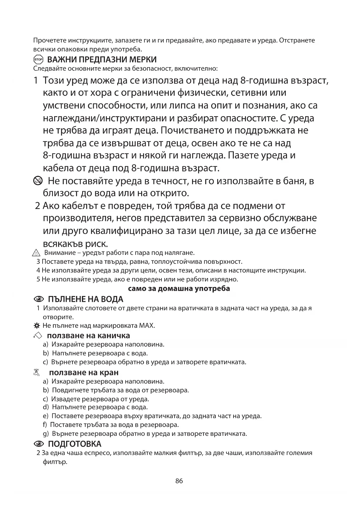 78 Редовно почиствайте уреда от котлен камък (най-малко веднъж месечно).