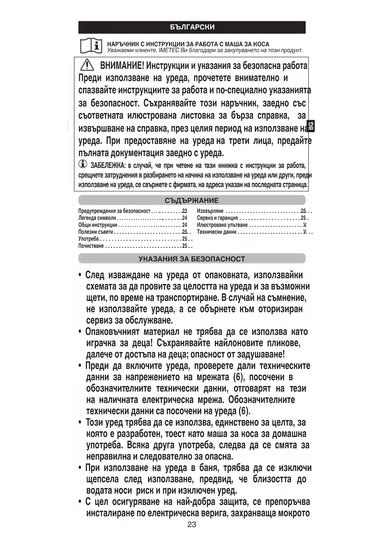 Уважаеми клиенте, IMETEC Ви благодари за закупуването на този продукт.