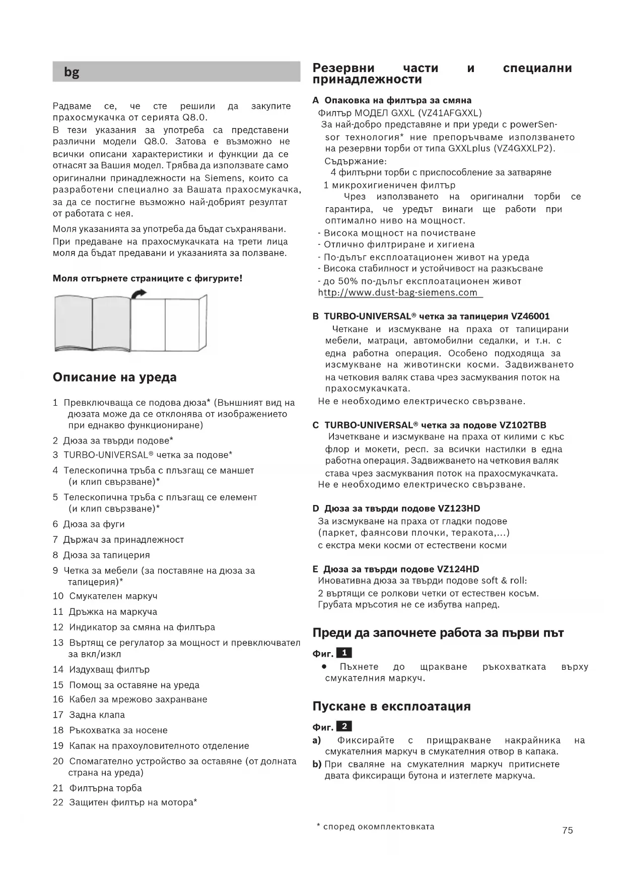 VSQ8SEN66A - Прахосмукачка SIEMENS - Notice d'utilisation et mode d'emploi gratuit