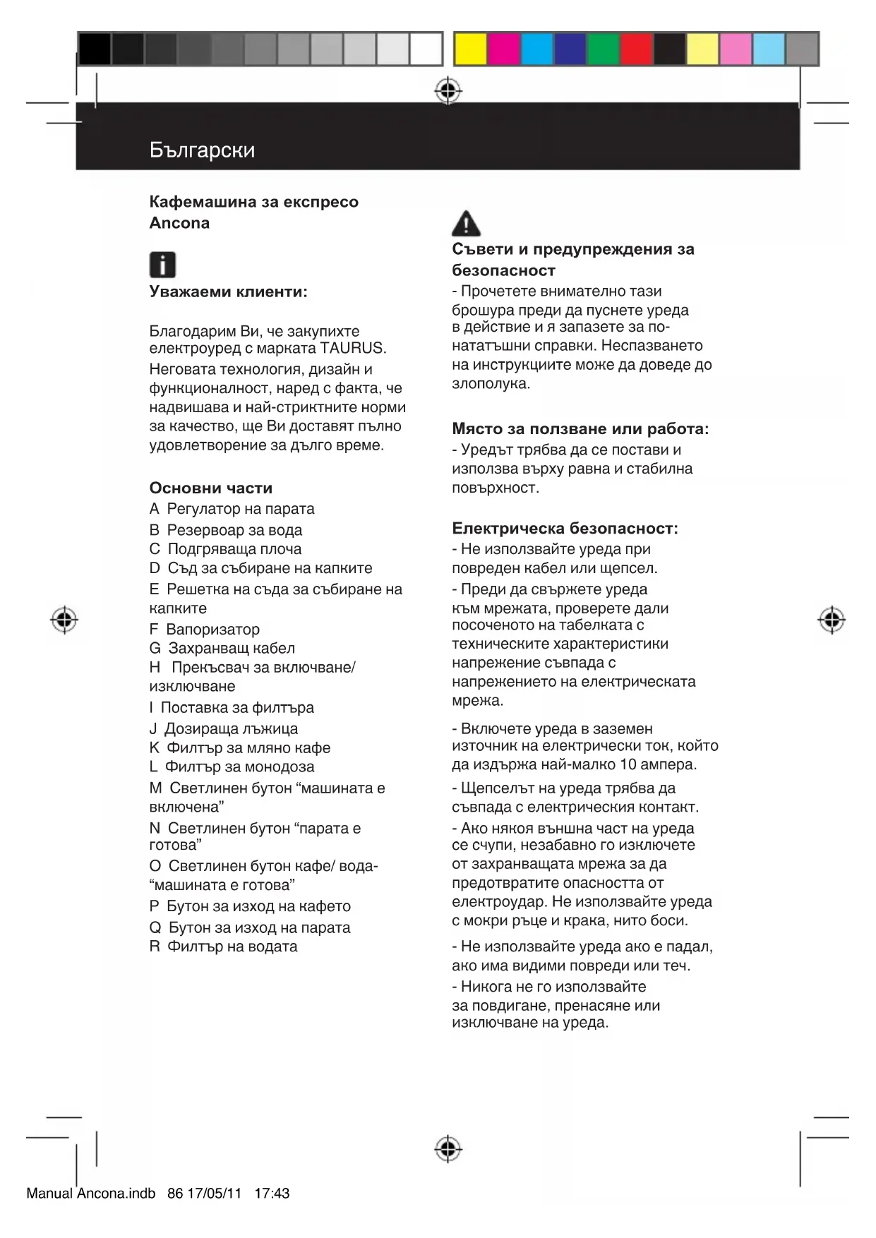 Ancona - Кафемашина TAURUS - Notice d'utilisation et mode d'emploi gratuit