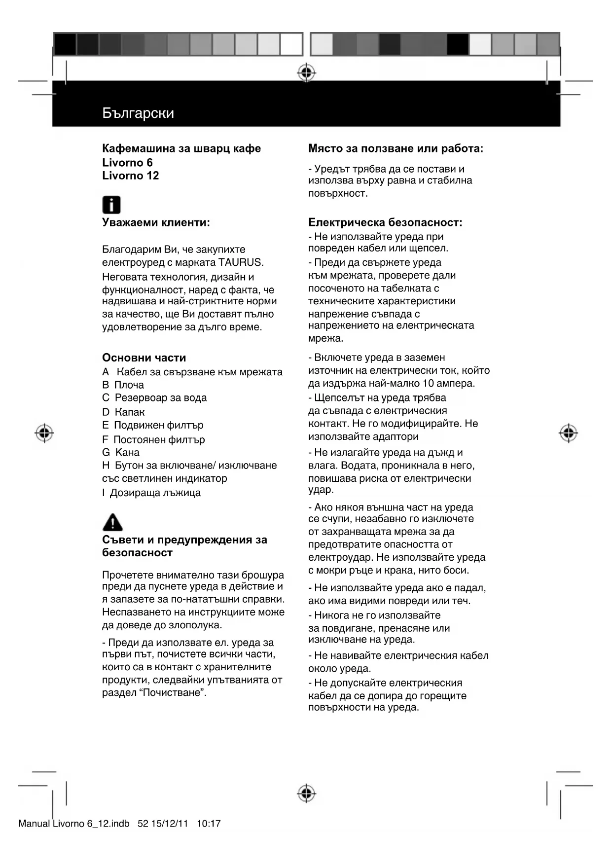 Livorno 6 - Кафемашина TAURUS - Notice d'utilisation et mode d'emploi gratuit