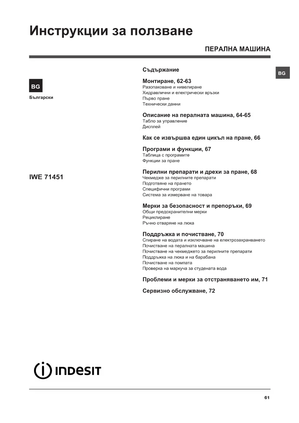 IWE 71451B ECO (EU) - Пералня INDESIT - Безплатно ръководство за потребителя