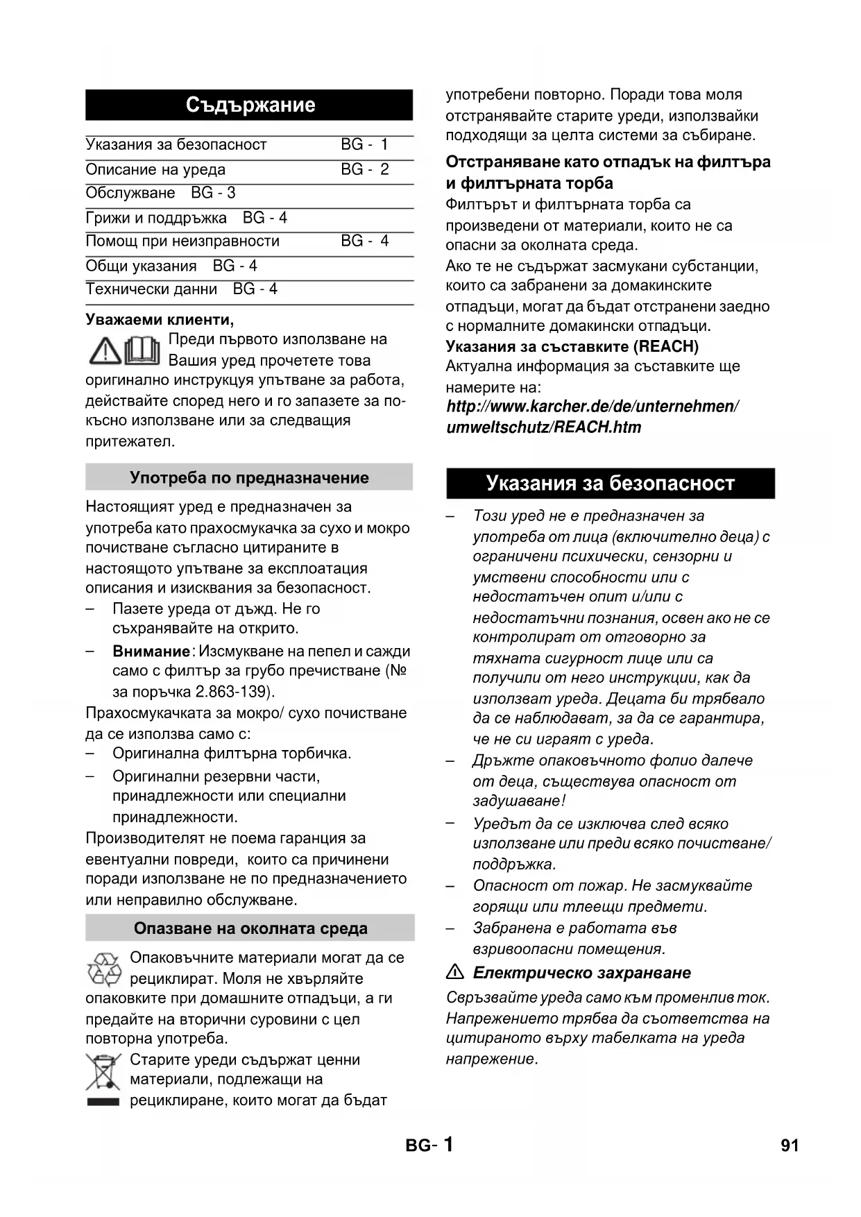 РЪКОВОДСТВО ЗА ПОТРЕБИТЕЛЯ A 2500 Kärcher