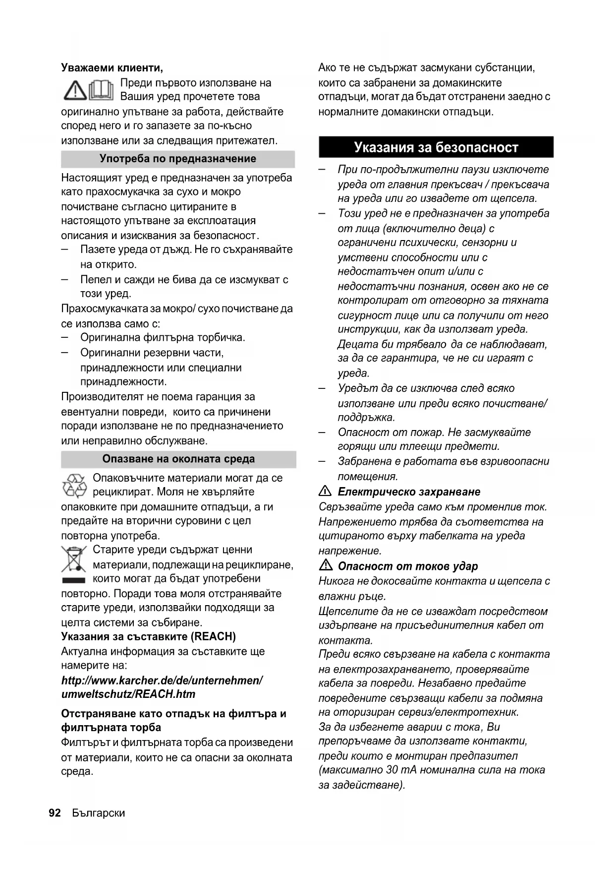 РЪКОВОДСТВО ЗА ПОТРЕБИТЕЛЯ A 2236 X Kärcher
