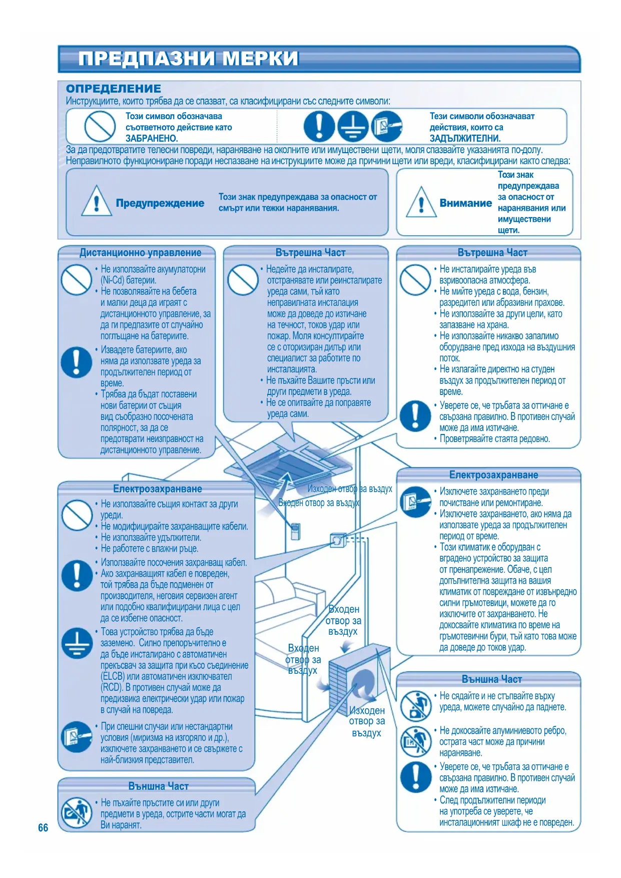 Инструкциите, които трябва да се спазват, са класифицирани със следните символи:
