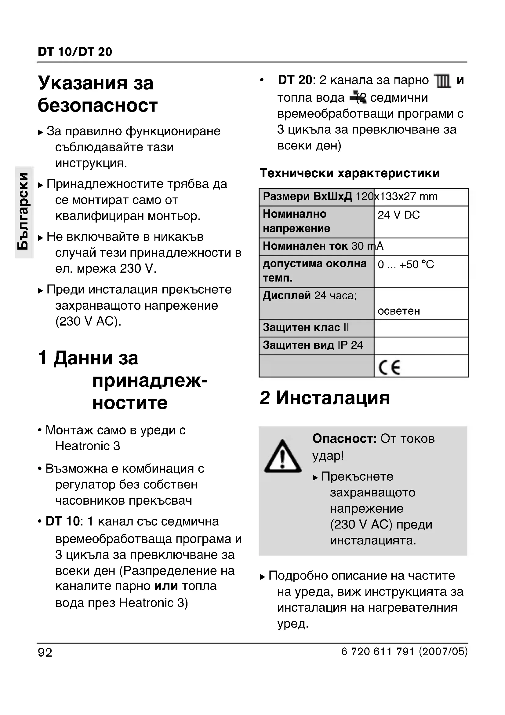 - най-малкият цикъл за превключване е 1 минута95 DT 10/DT 20 6 720 611 791 (2007/05)