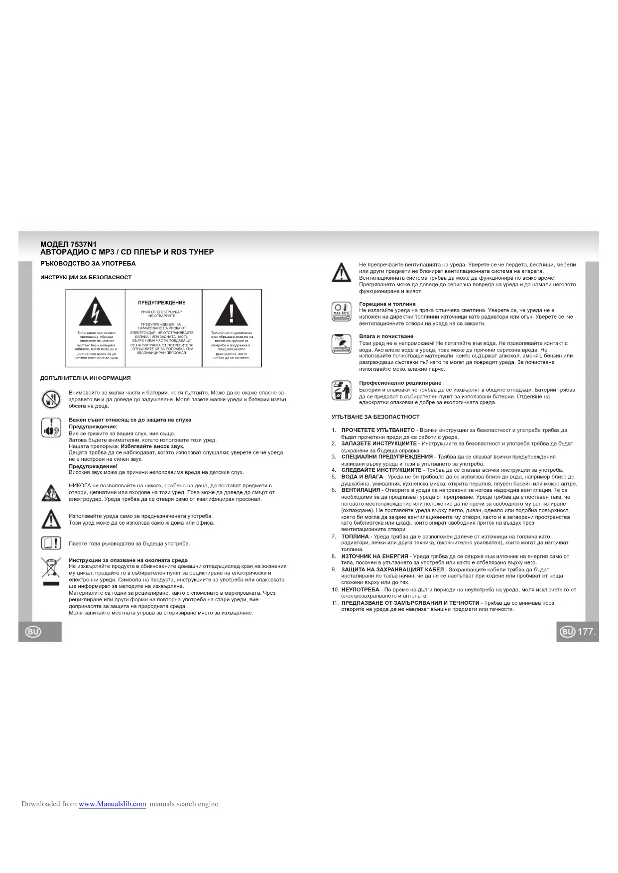 7537N1 - автомобилен радио ELTA - Безплатно ръководство за потребителя