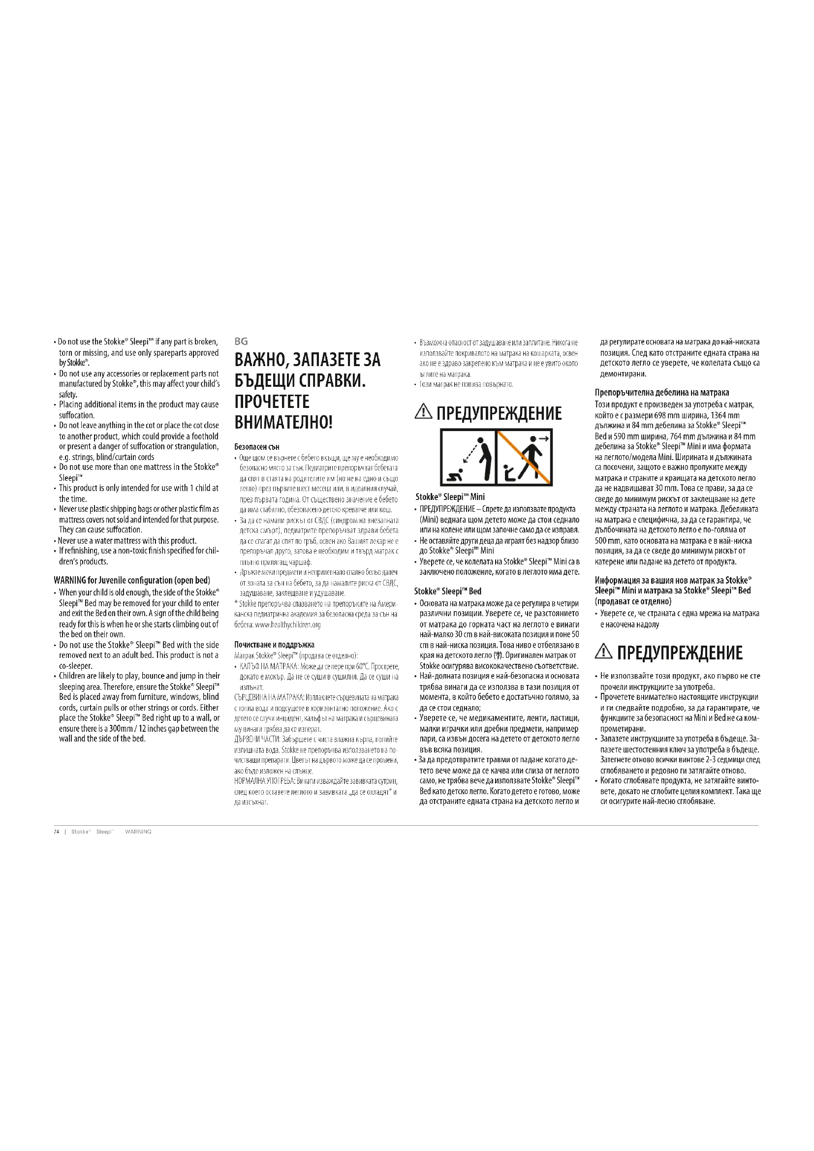 - Този матрак не попива повърнато. ПРЕДУПРЕЖДЕНИЕ Stokke® Sleepi™ Mini