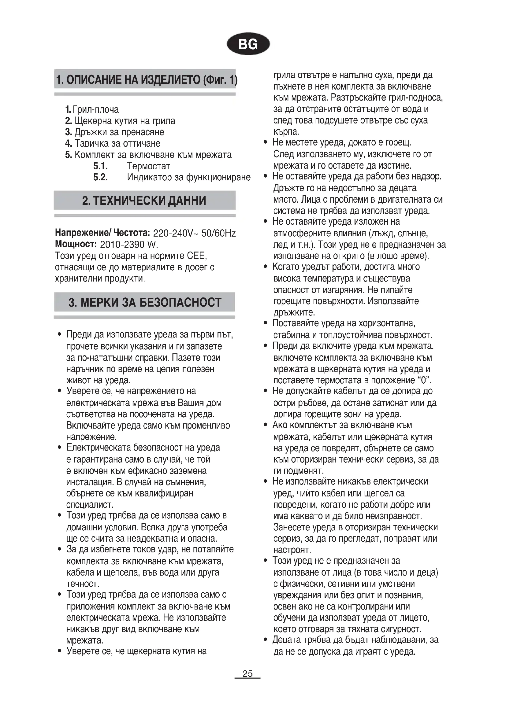 - Уверете се, че напрежението на електрическата мрежа във Вашия дом съответства на посочената на уреда. Включвайте уреда само към променливо напрежение.