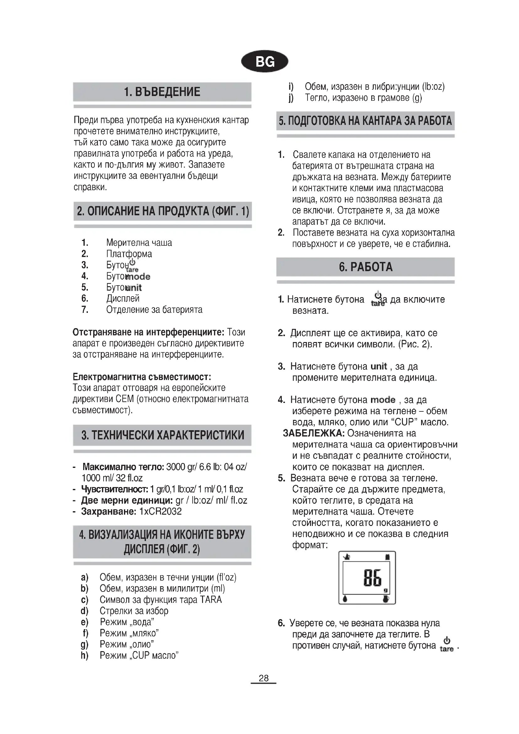 Преди първа употреба на кухненския кантар прочетете внимателно инструкциите, тъй като само така може да осигурите правилната употреба и работа на уреда, както и по-дългия му живот. Запазете инструкциите за евентуални бъдещи
