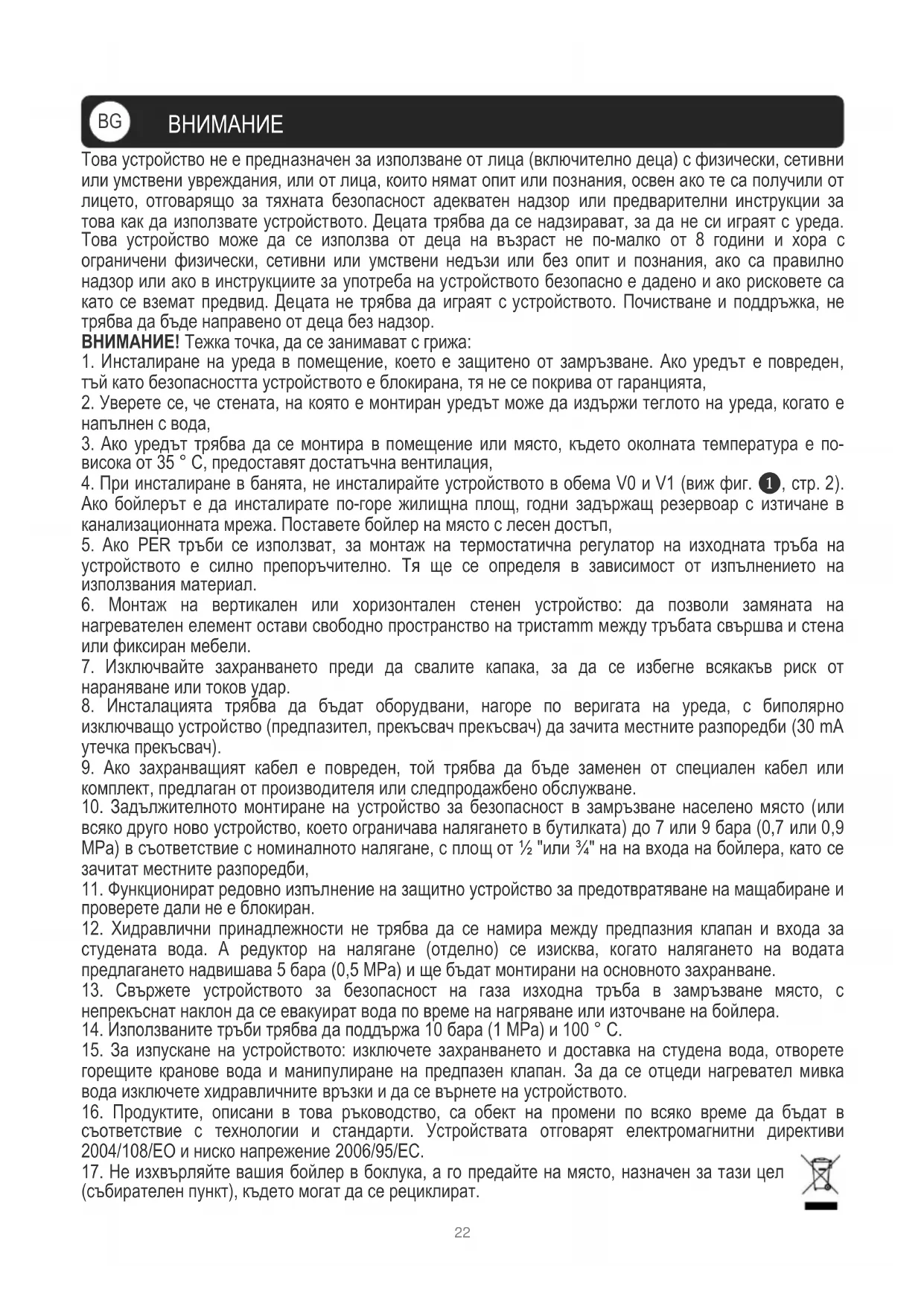 17. Не изхвърляйте вашия бойлер в боклука, а го предайте на място, назначен за тази цел