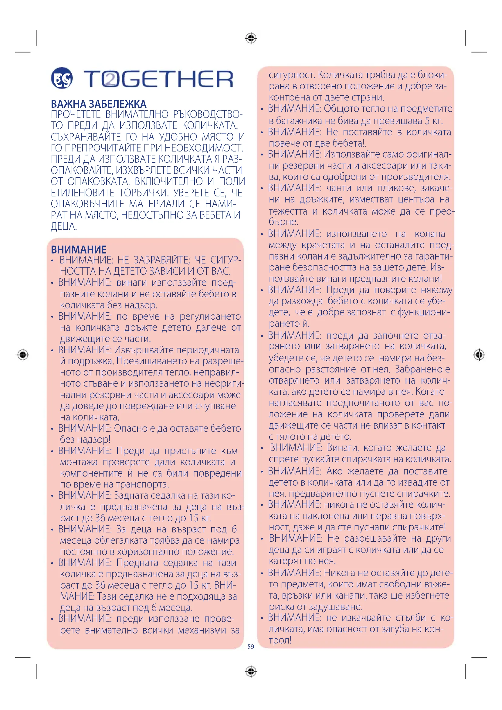 - ВНИМАНИЕ: Не поставяйте в количката повече от две бебета!.