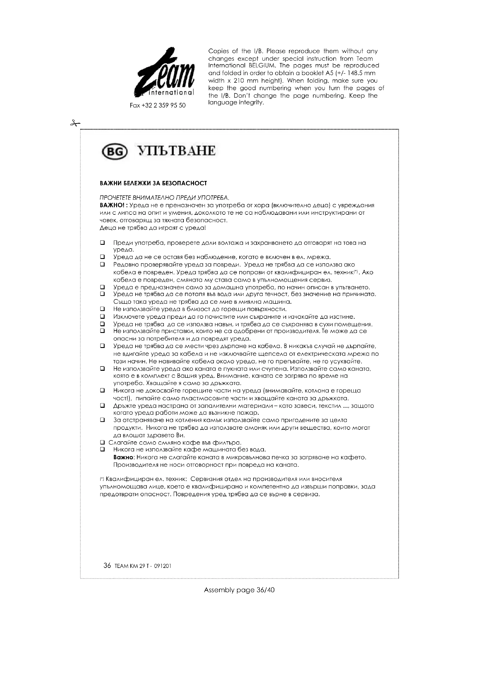 KM 29 T - Кафемашина TEAM - Безплатно ръководство за потребителя
