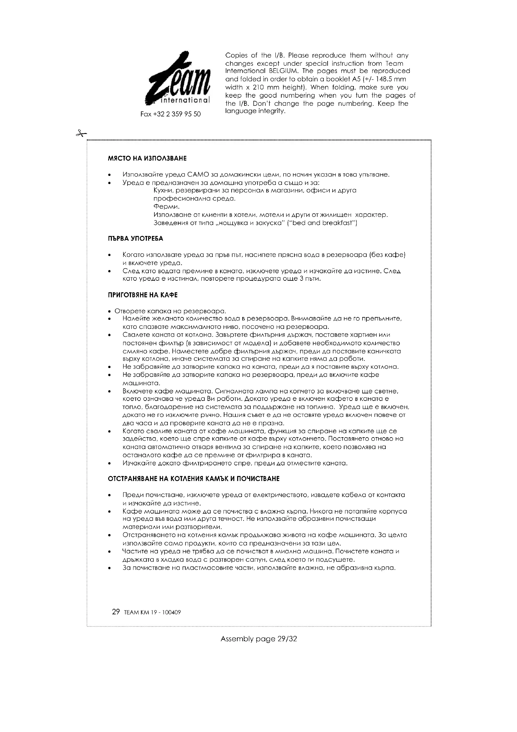 KM 19 - Кафемашина TEAM - Безплатно ръководство за потребителя