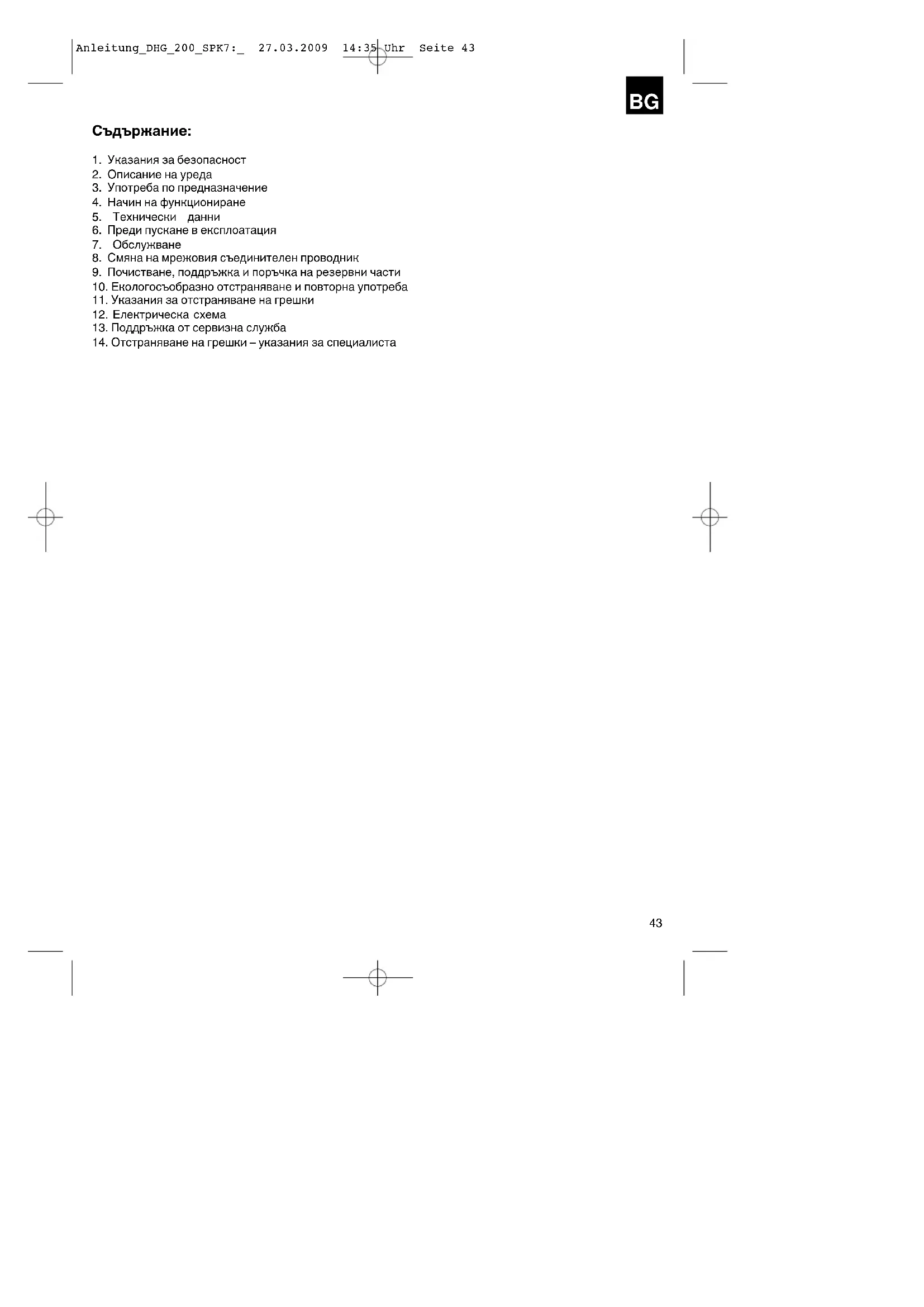 Anleitung_DHG_200_SPK7:_ 27.03.2009 14:35 Uhr Seite 43 Внимание! При използването на уредите трябва да се спазват някои предпазни мерки по безопасност, за да се предотвратят наранявания и щети. За целта внимателно прочетете това упътване за