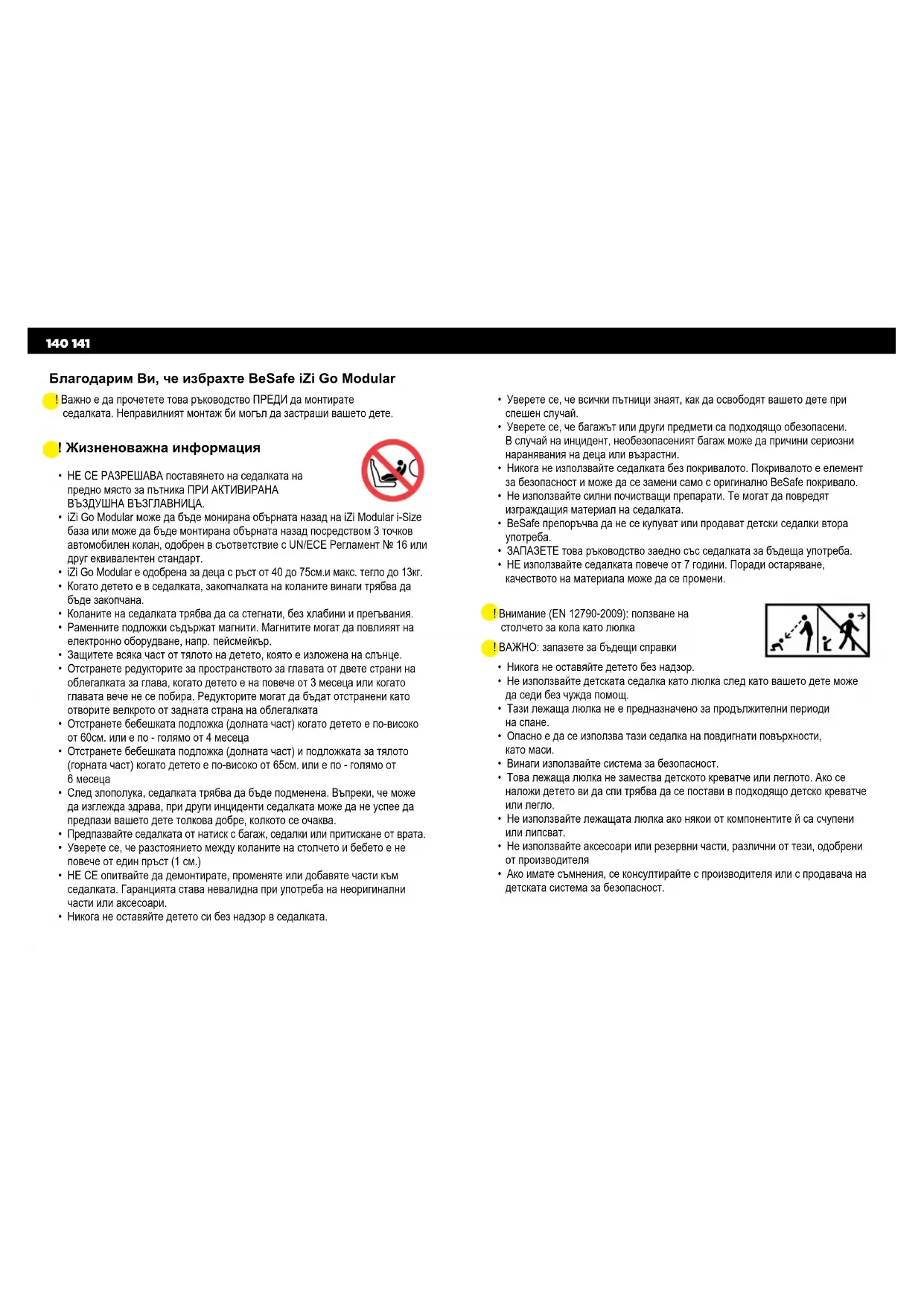 - Никога не оставяйте детето си без надзор в седалката. Благодарим Ви, че избрахте BeSafe iZi Go Modular ! Важно е да прочетете това ръководство ПРЕДИ да монтирате седалката. Неправилният монтаж би могъл да застраши вашето дете.