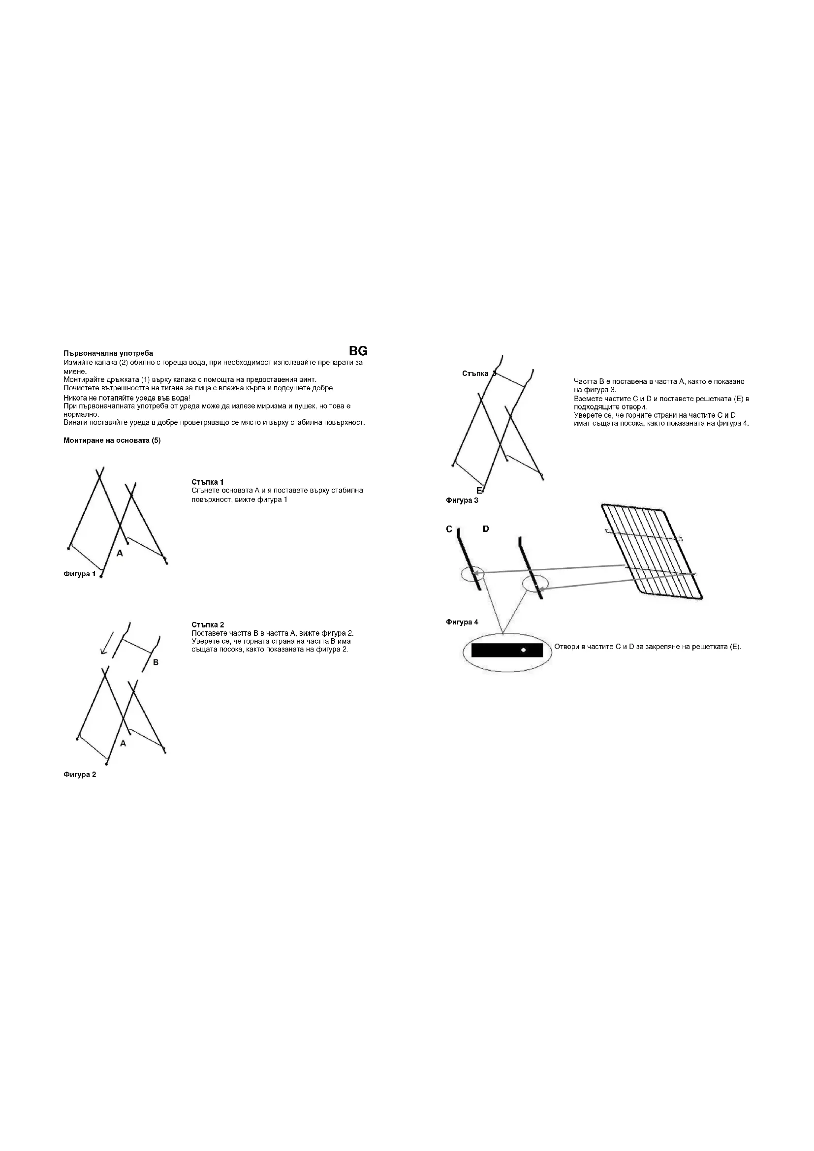 Фигура 5 Стъпка 4 Решетката е монтирана в частите C и D, както е показано на фигура 5. Поставете решетката с частите C и D върху основата. Приплъзнете решетката (E) към вече сглобената част (фигура 6), както е показано със стрелките.