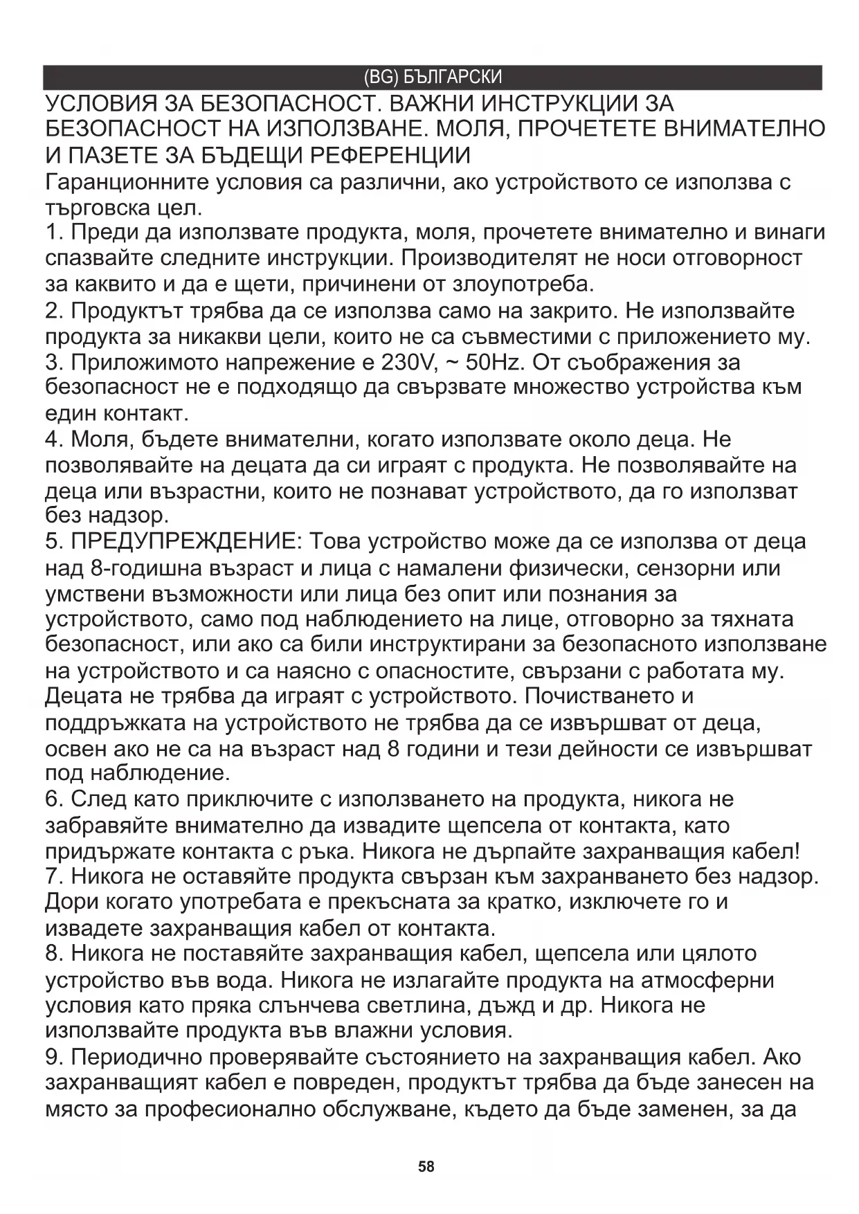 5. ПРЕДУПРЕЖДЕНИЕ: Това устройство може да се използва от деца