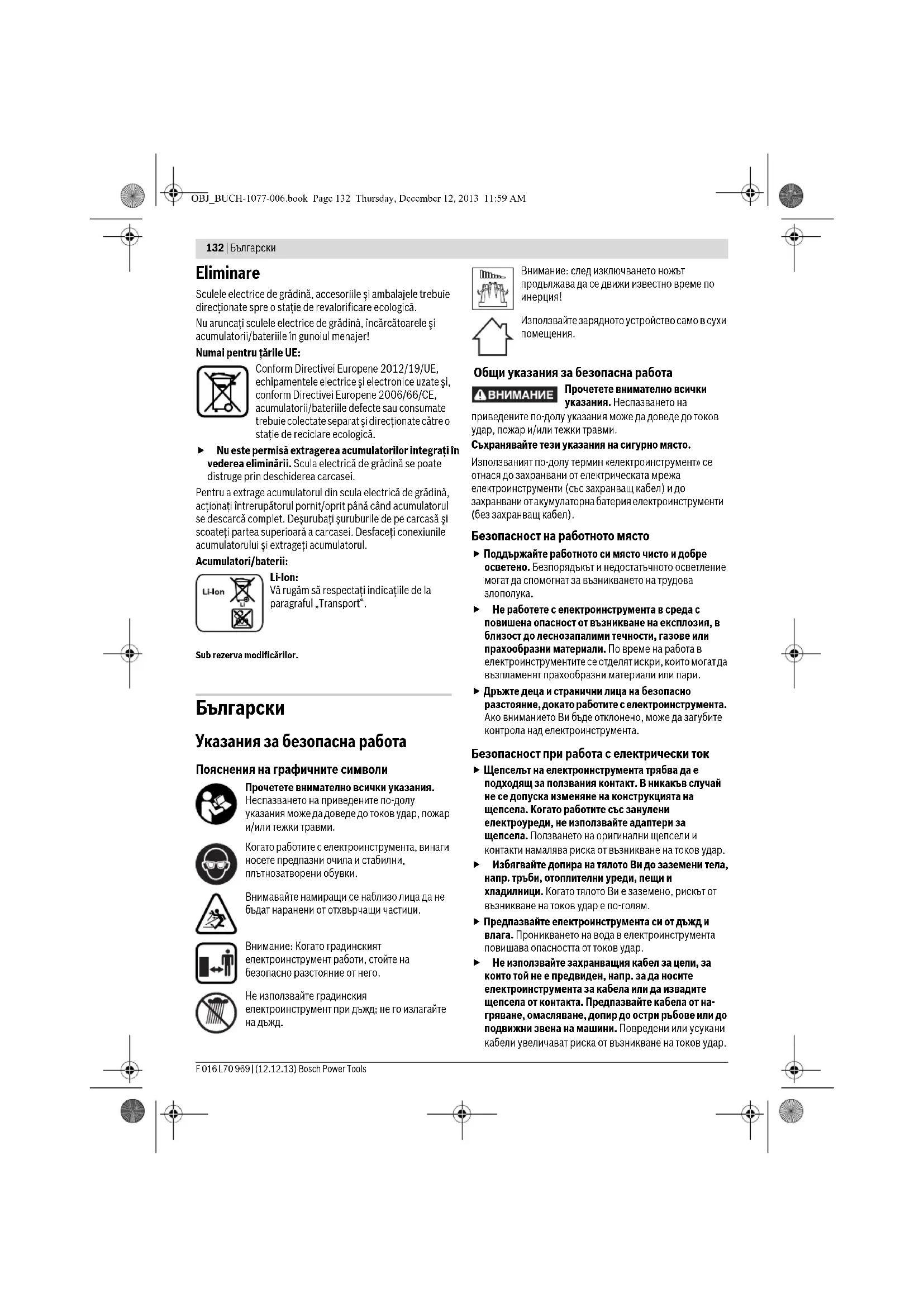 OBJ_BUCH-1077-006.book Page 134 Thursday, December 12, 2013 11:59 AMБългарски | 135 Bosch Power Tools F 016 L70 969 | (12.12.13) Предпазвайте се от нараняване с ножовете на ръцете и