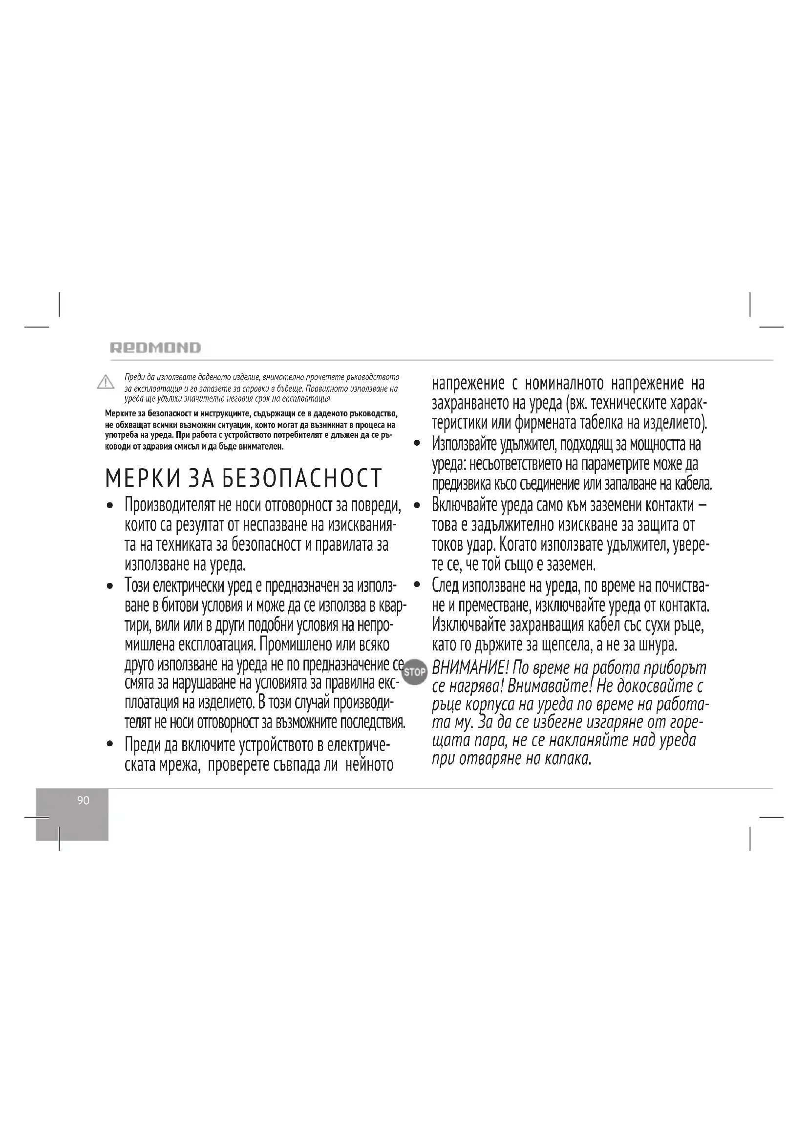 РЪКОВОДСТВО ЗА ПОТРЕБИТЕЛЯ RKM170SE Redmond
