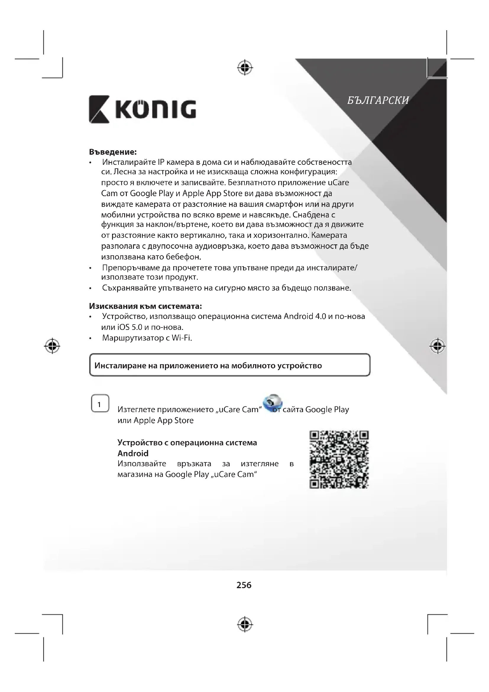 Изтеглетеприложението„uCareCam“ отсайтаGooglePlay илиAppleAppStore Устройство с операционна система Android Използвайте връзката за изтегляне в магазинанаGooglePlay„uCareCam“БЪЛГАРСКИ