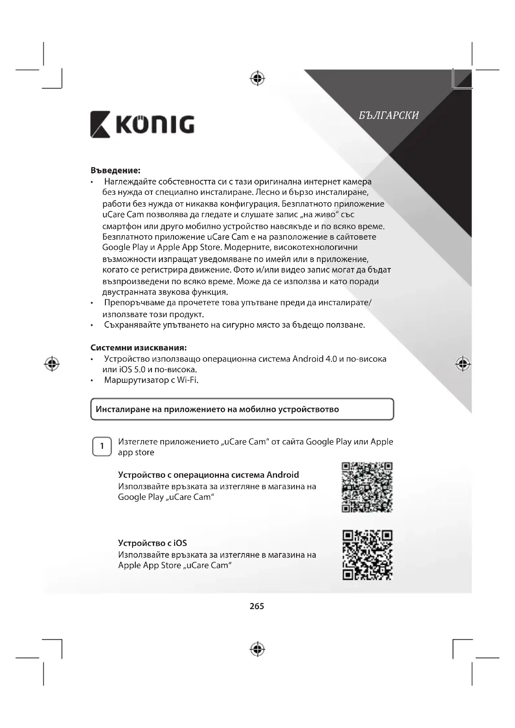 Изтеглетеприложението„uCareCam“отсайтаGooglePlayилиApple appstore Устройство с операционна система Android Използвайтевръзкатазаизтегляневмагазинана GooglePlay„uCareCam“ Устройство с iOS Използвайтевръзкатазаизтегляневмагазинана AppleAppStore„uCareCam“БЪЛГАРСКИ