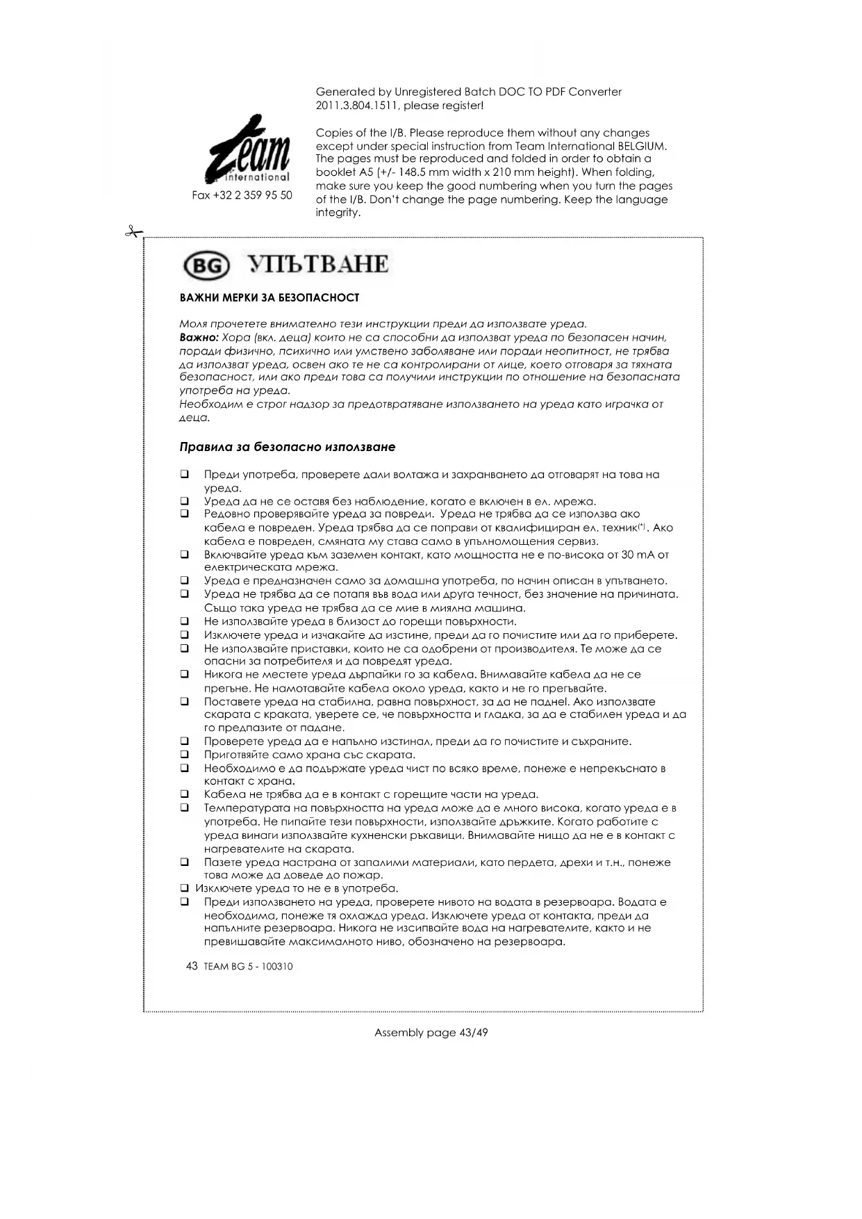 РЪКОВОДСТВО ЗА ПОТРЕБИТЕЛЯ BG 5 TEAM