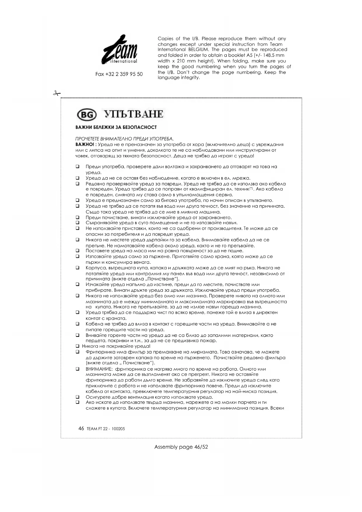 FT 22 - фритюрник TEAM - Безплатно ръководство за потребителя