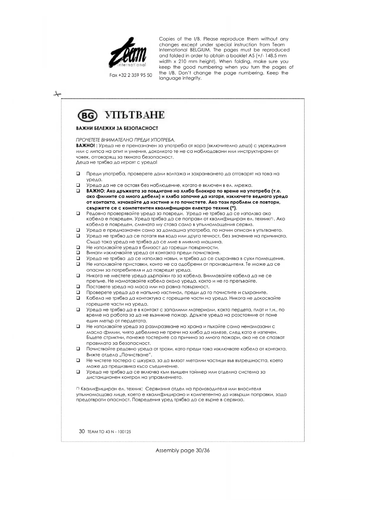 TO 43 - тостер TEAM - Безплатно ръководство за потребителя