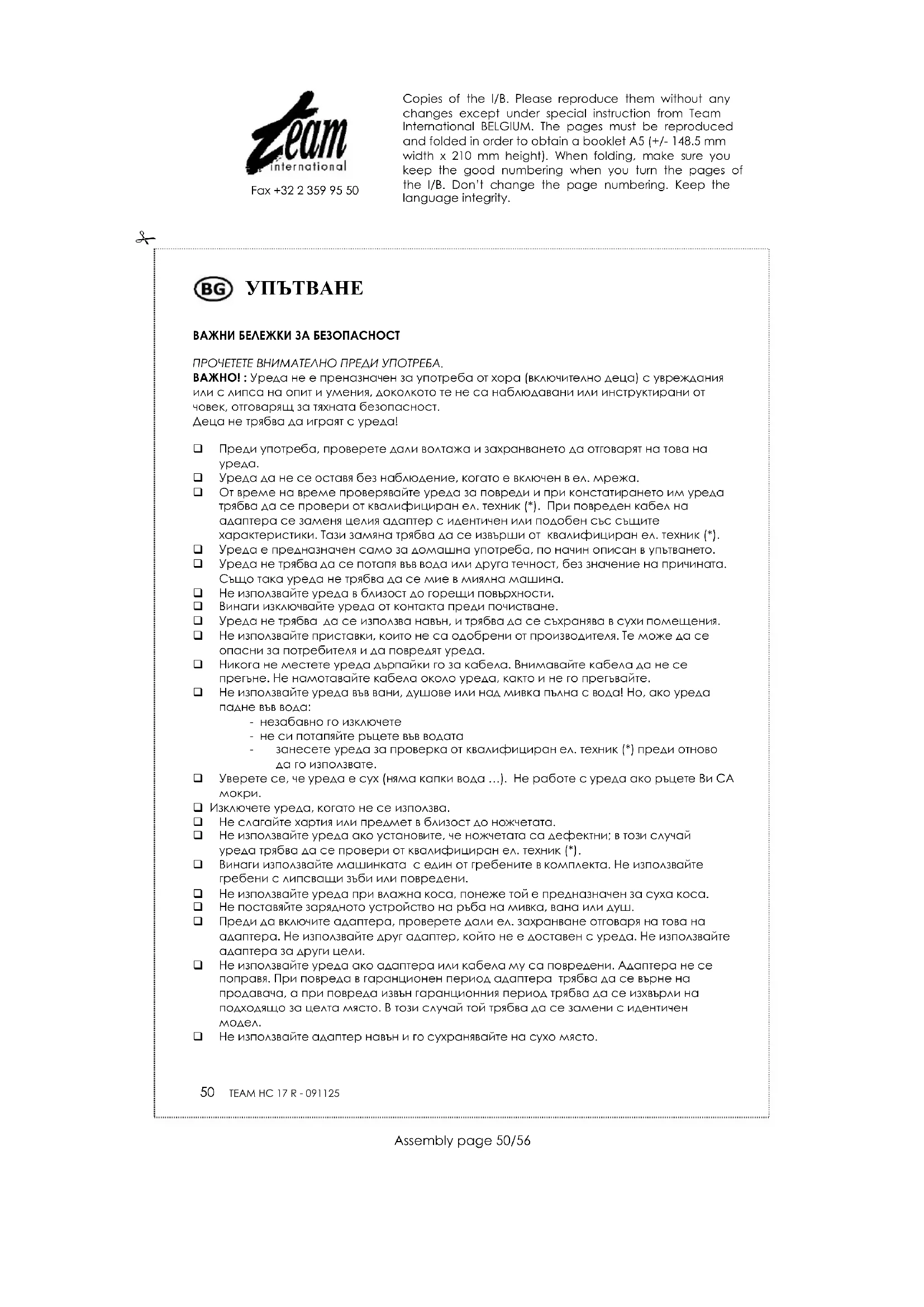 РЪКОВОДСТВО ЗА ПОТРЕБИТЕЛЯ HC 17 R TEAM