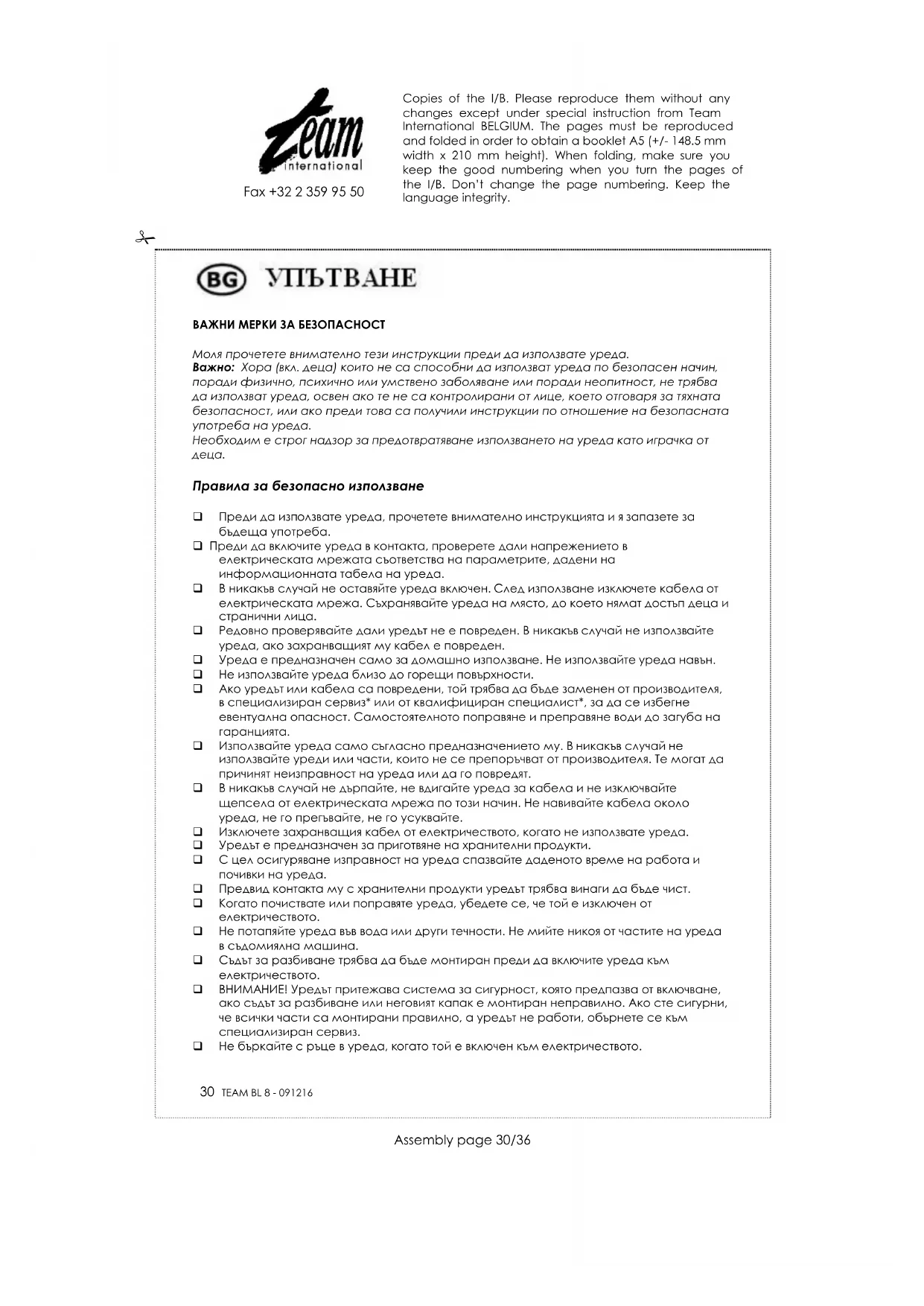 BL 8 - Миксер TEAM - Безплатно ръководство за потребителя