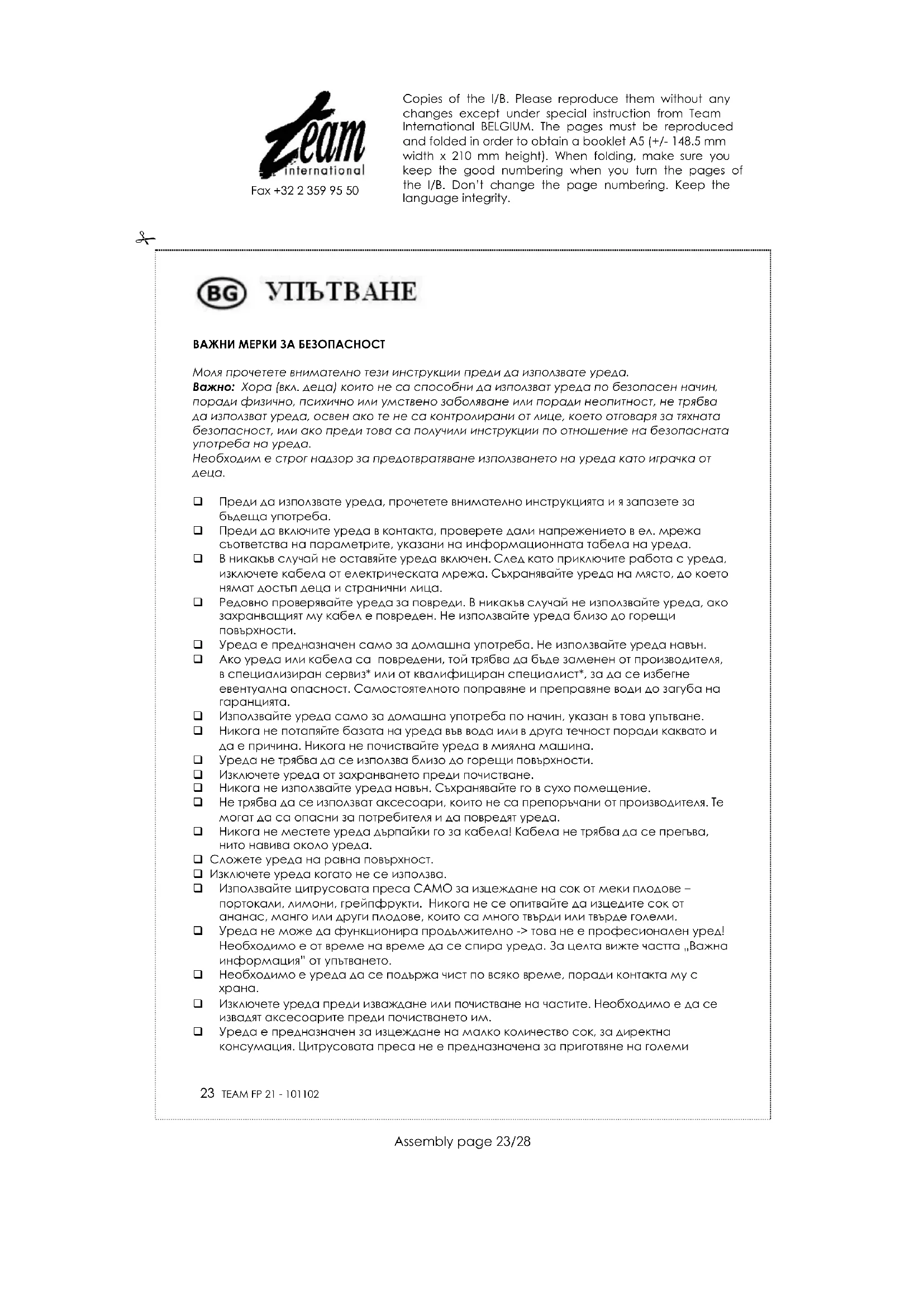 FP 21 - Сокоизстисквачка TEAM - Безплатно ръководство за потребителя