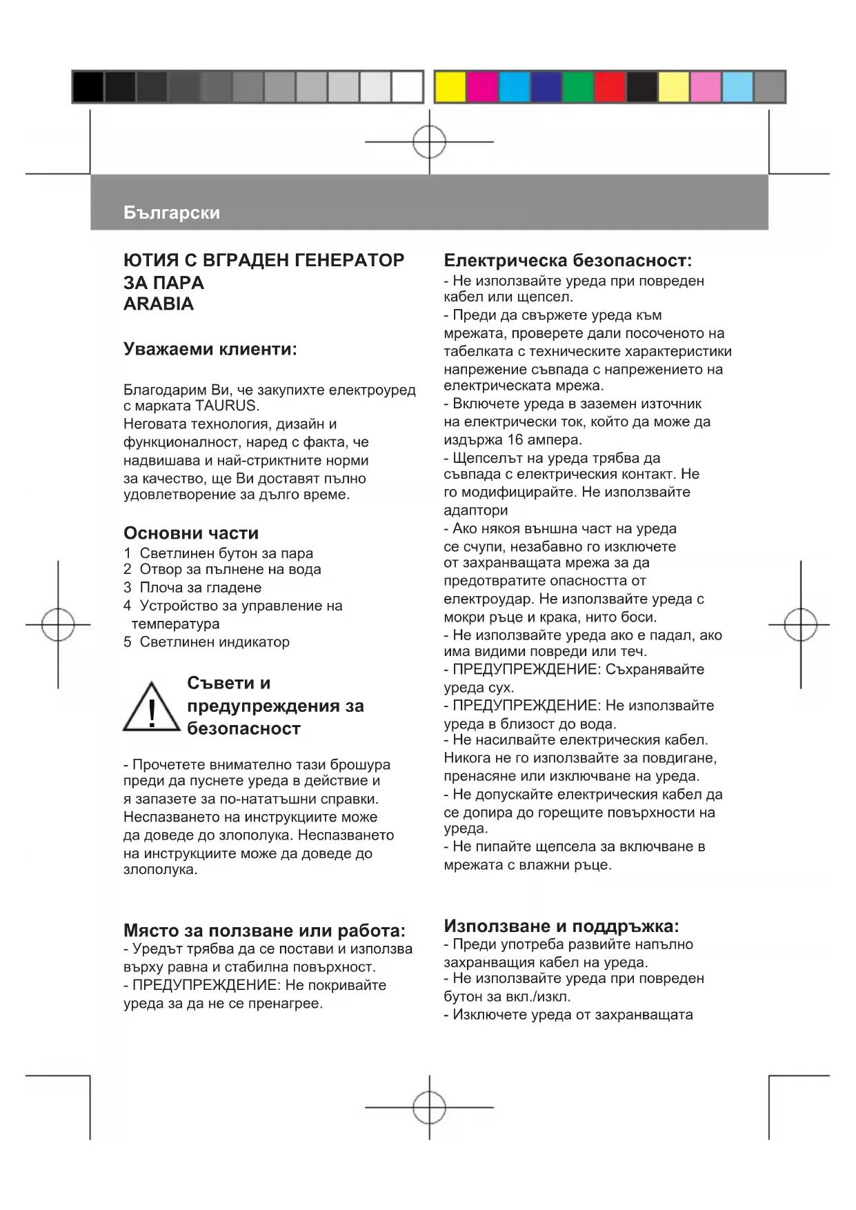 РЪКОВОДСТВО ЗА ПОТРЕБИТЕЛЯ Arabia TAURUS