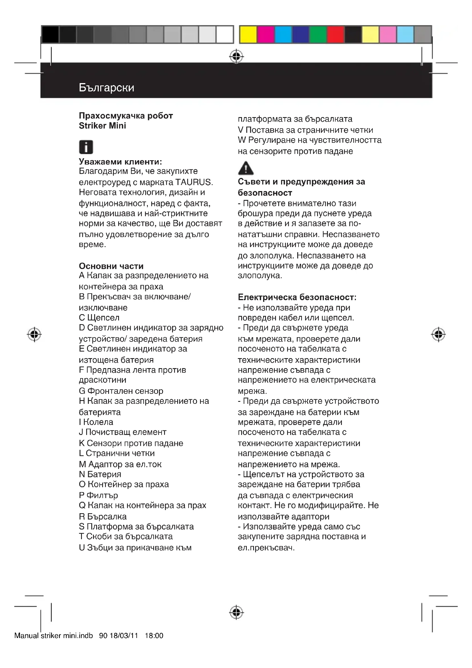 РЪКОВОДСТВО ЗА ПОТРЕБИТЕЛЯ Robot Striker Mini TAURUS