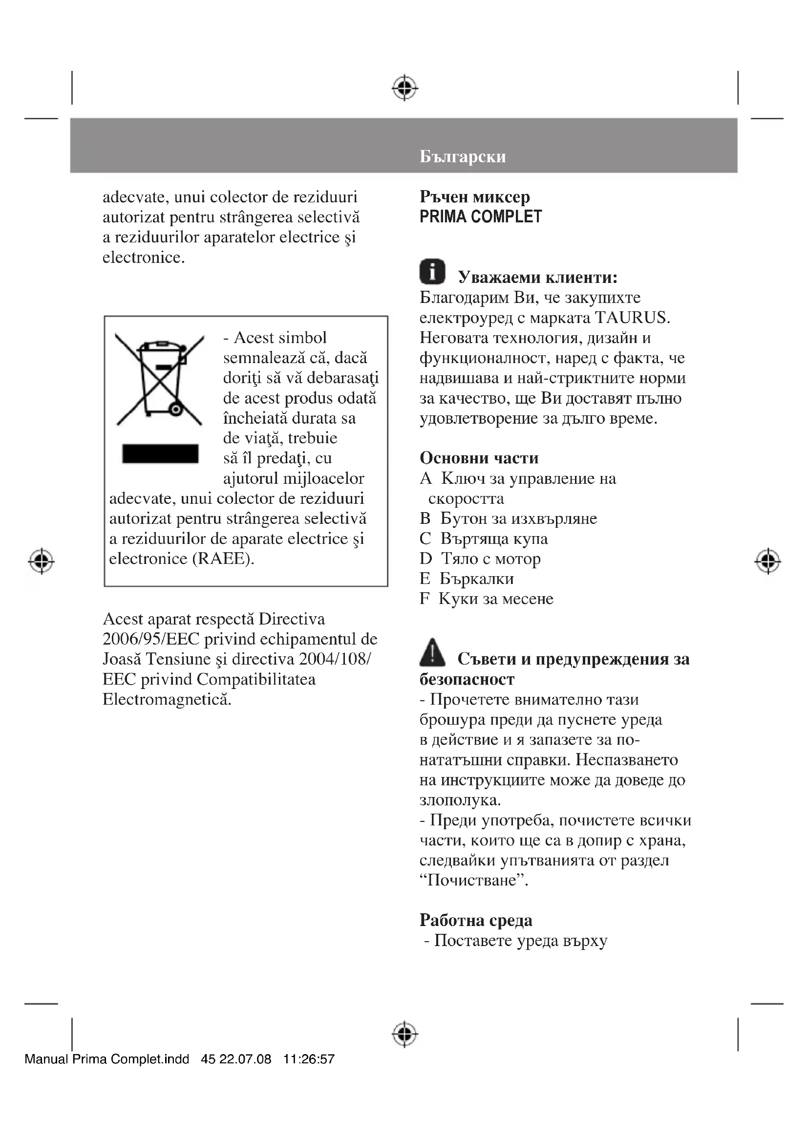 РЪКОВОДСТВО ЗА ПОТРЕБИТЕЛЯ Prima Complet TAURUS