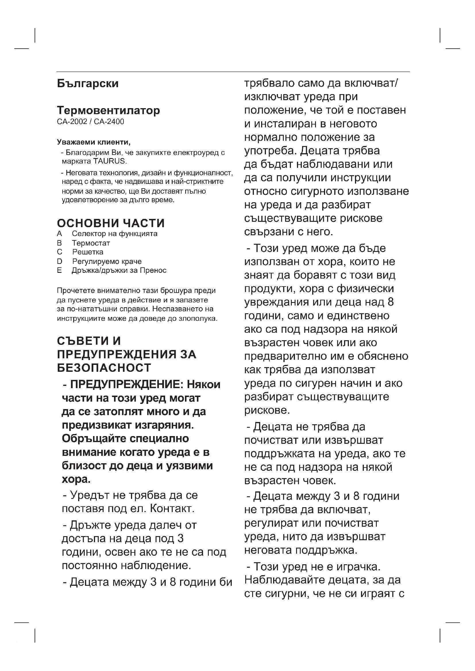 РЪКОВОДСТВО ЗА ПОТРЕБИТЕЛЯ CA2002 TAURUS