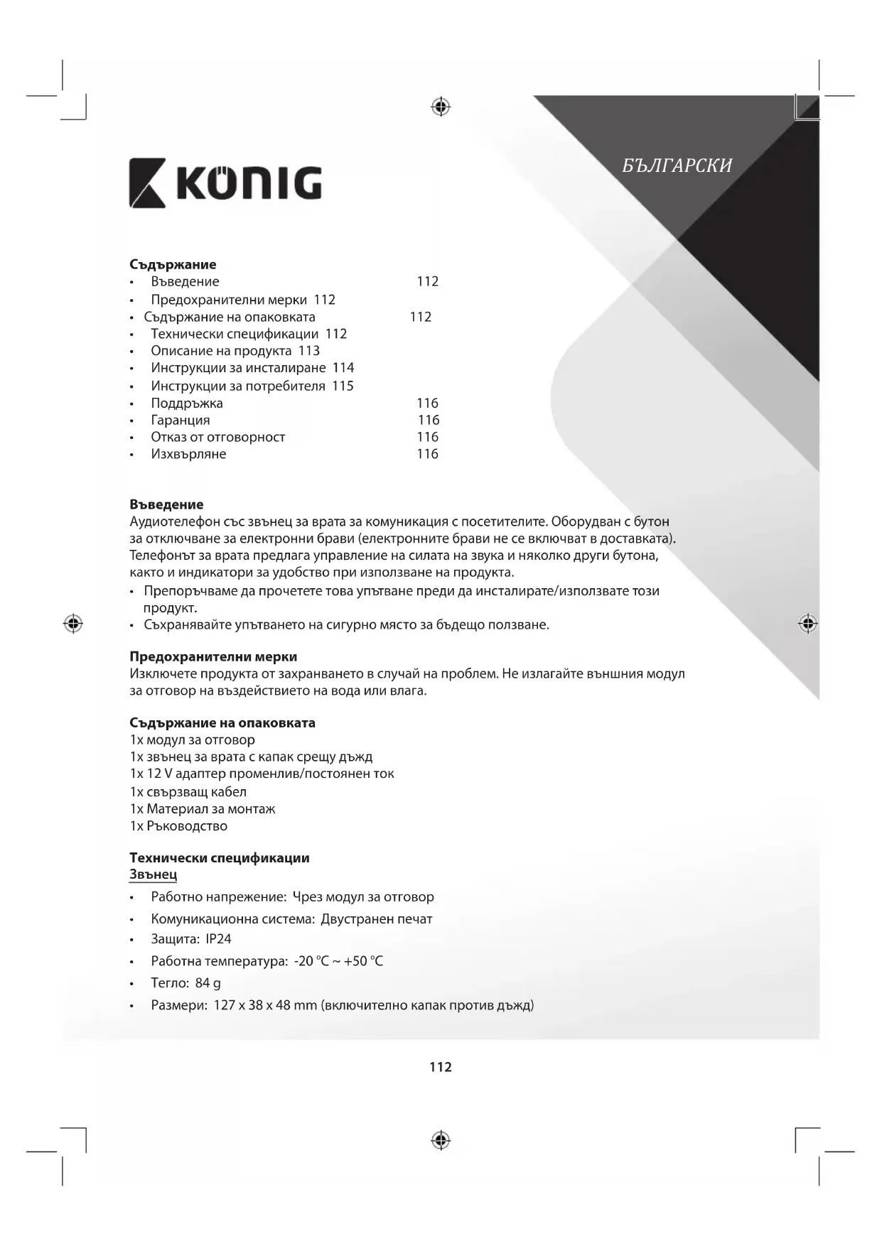 - Съдържание на опаковката 112