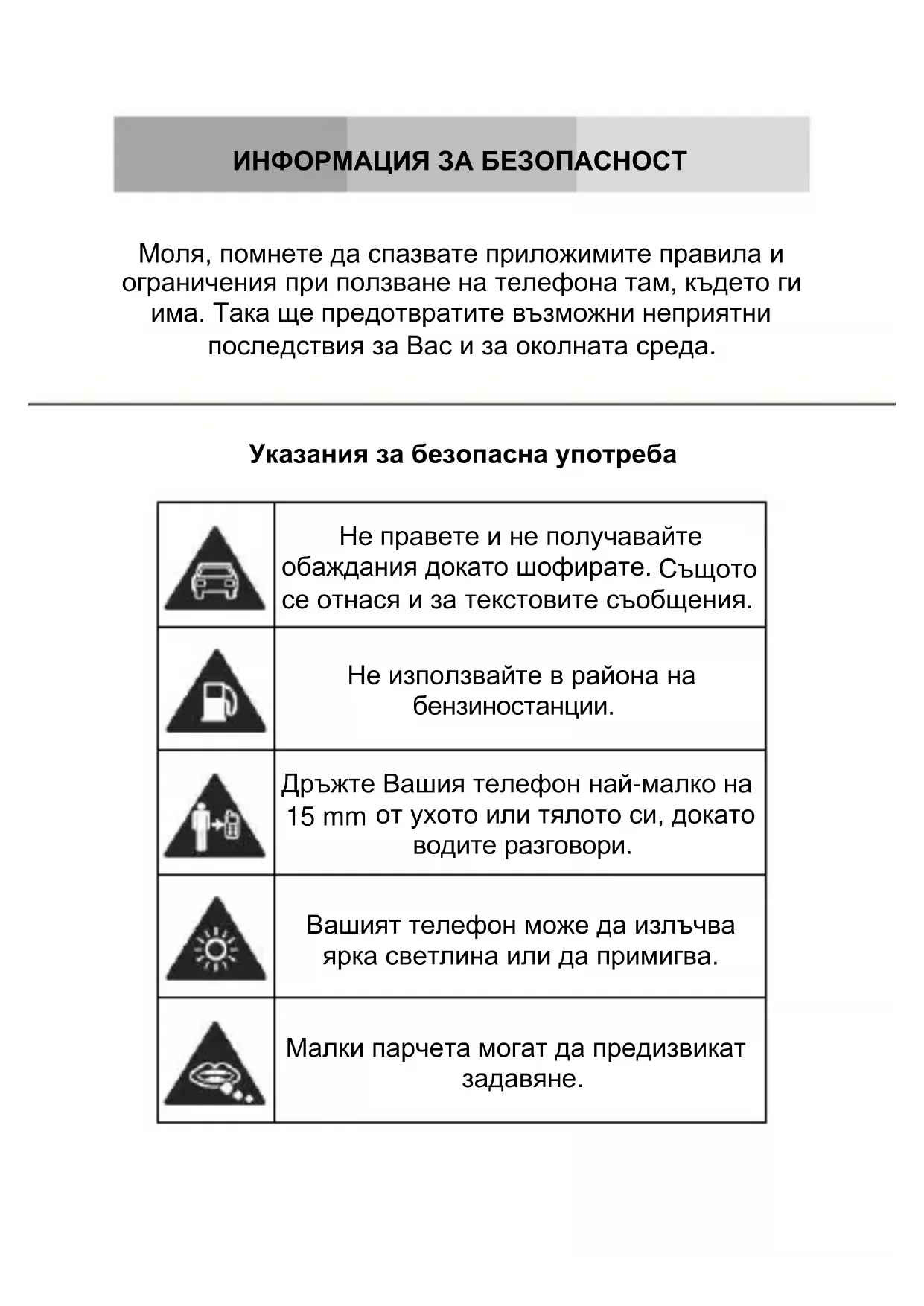 Моля, помнете да спазвате приложимите правила и ограничения при ползване на телефона там, където ги има. Така ще предотвратите възможни неприятни последствия за Вас и за околната среда.