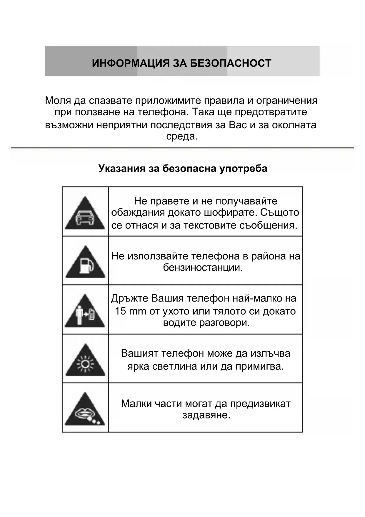Моля да спазвате приложимите правила и ограничения при ползване на телефона. Така ще предотвратите възможни неприятни последствия за Вас и за околната