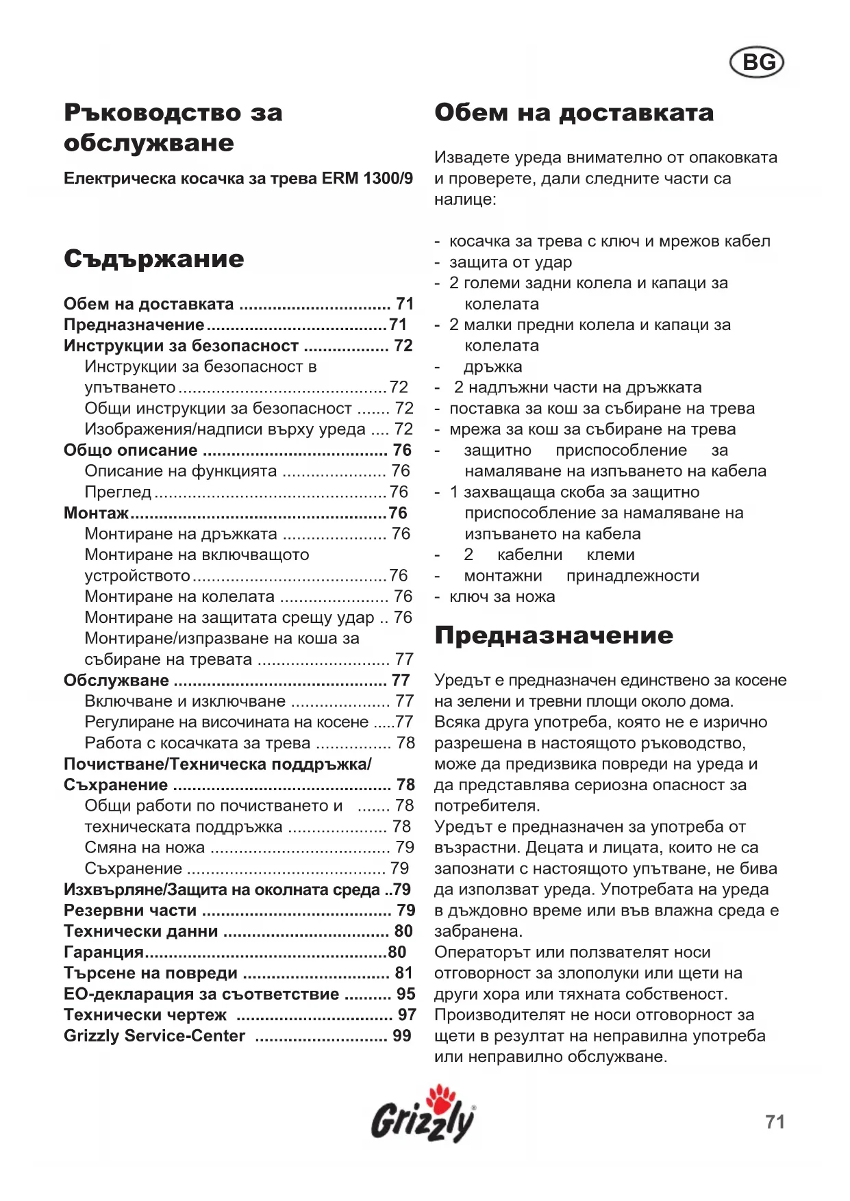 - Grizzly Service-Center Ръководство за p. 99
