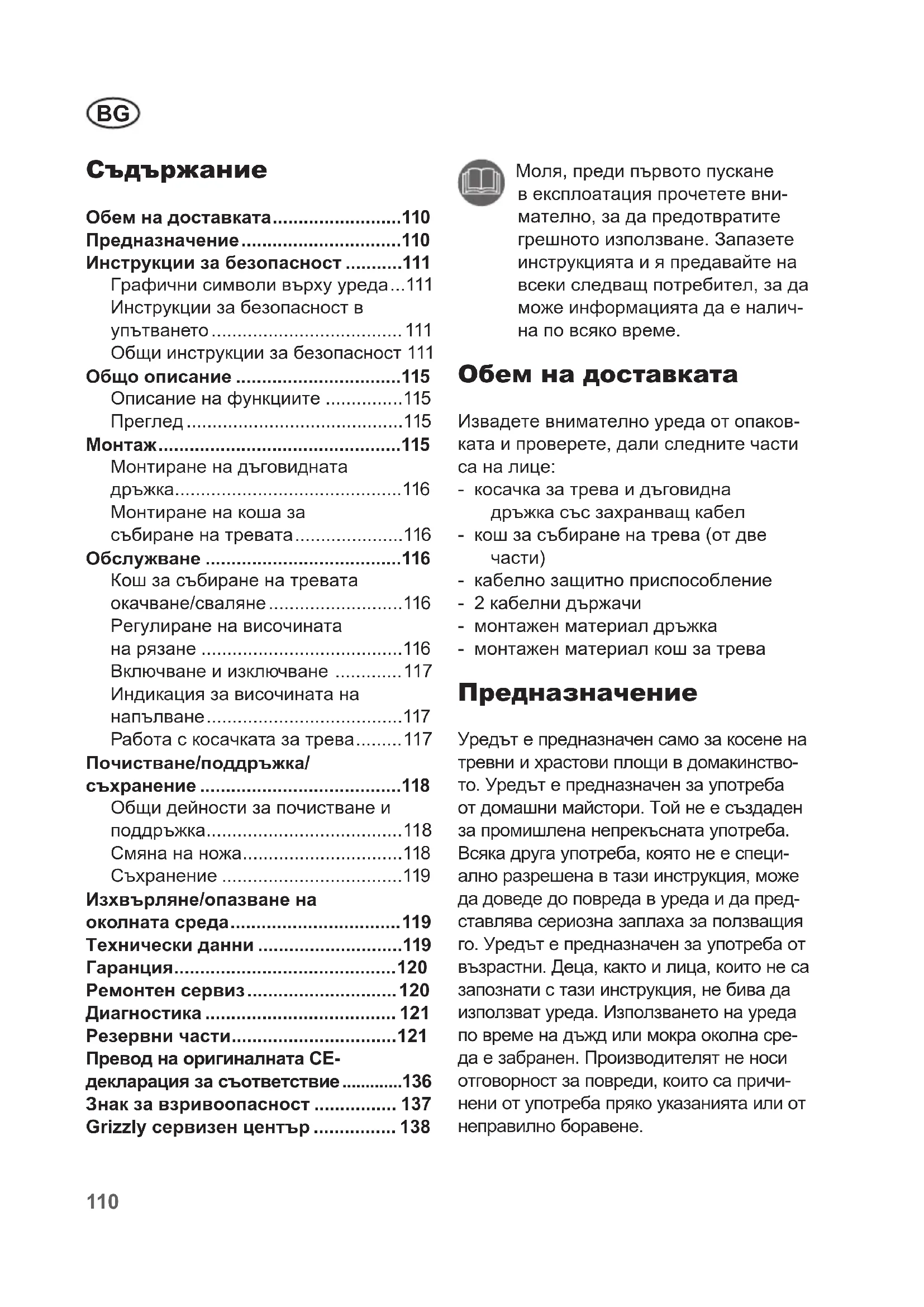 ERM 1434 G - косачка за трева Grizzly - Безплатно ръководство за потребителя