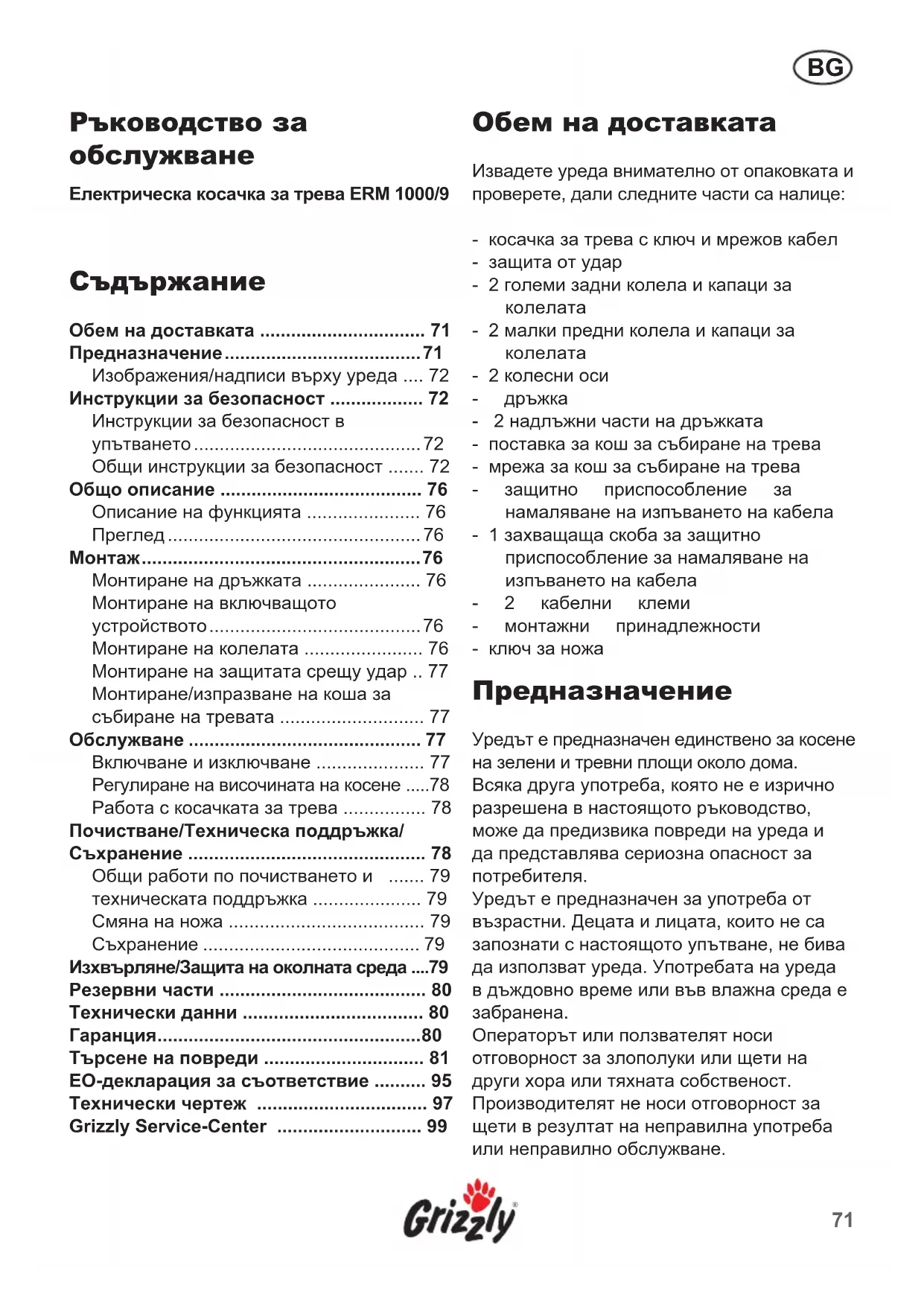 ERM 10009 - косачка за трева Grizzly - Безплатно ръководство за потребителя