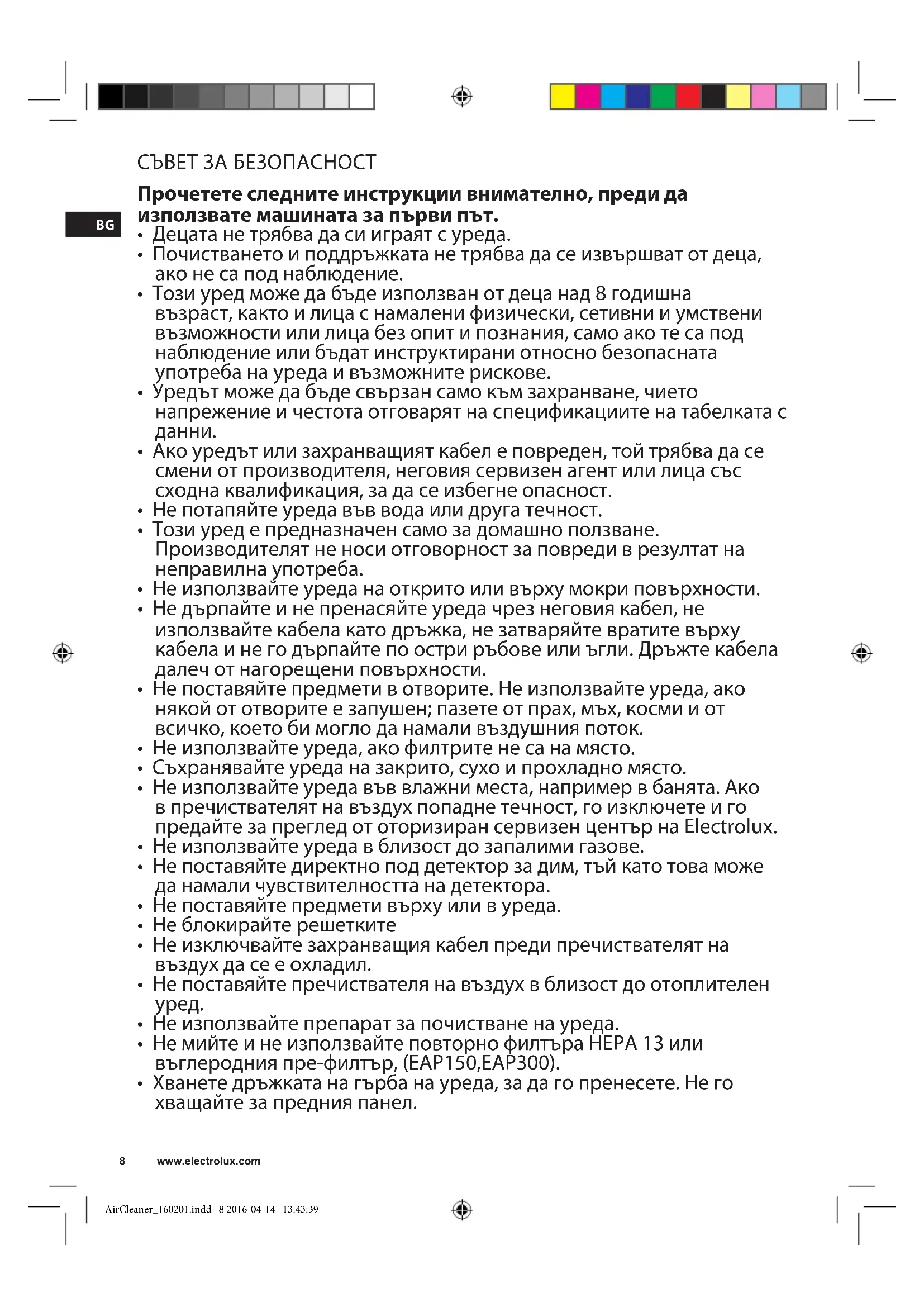 РЪКОВОДСТВО ЗА ПОТРЕБИТЕЛЯ EAP300 ELECTROLUX