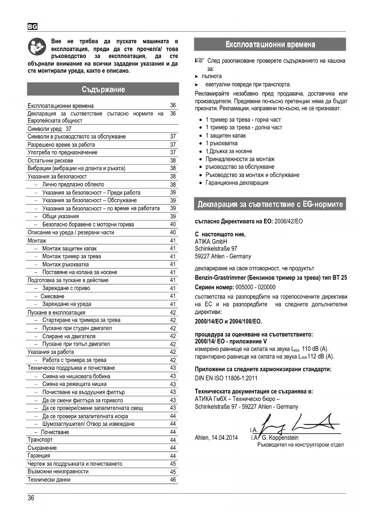 BT 25 - тример за трева ATIKA - Безплатно ръководство за потребителя