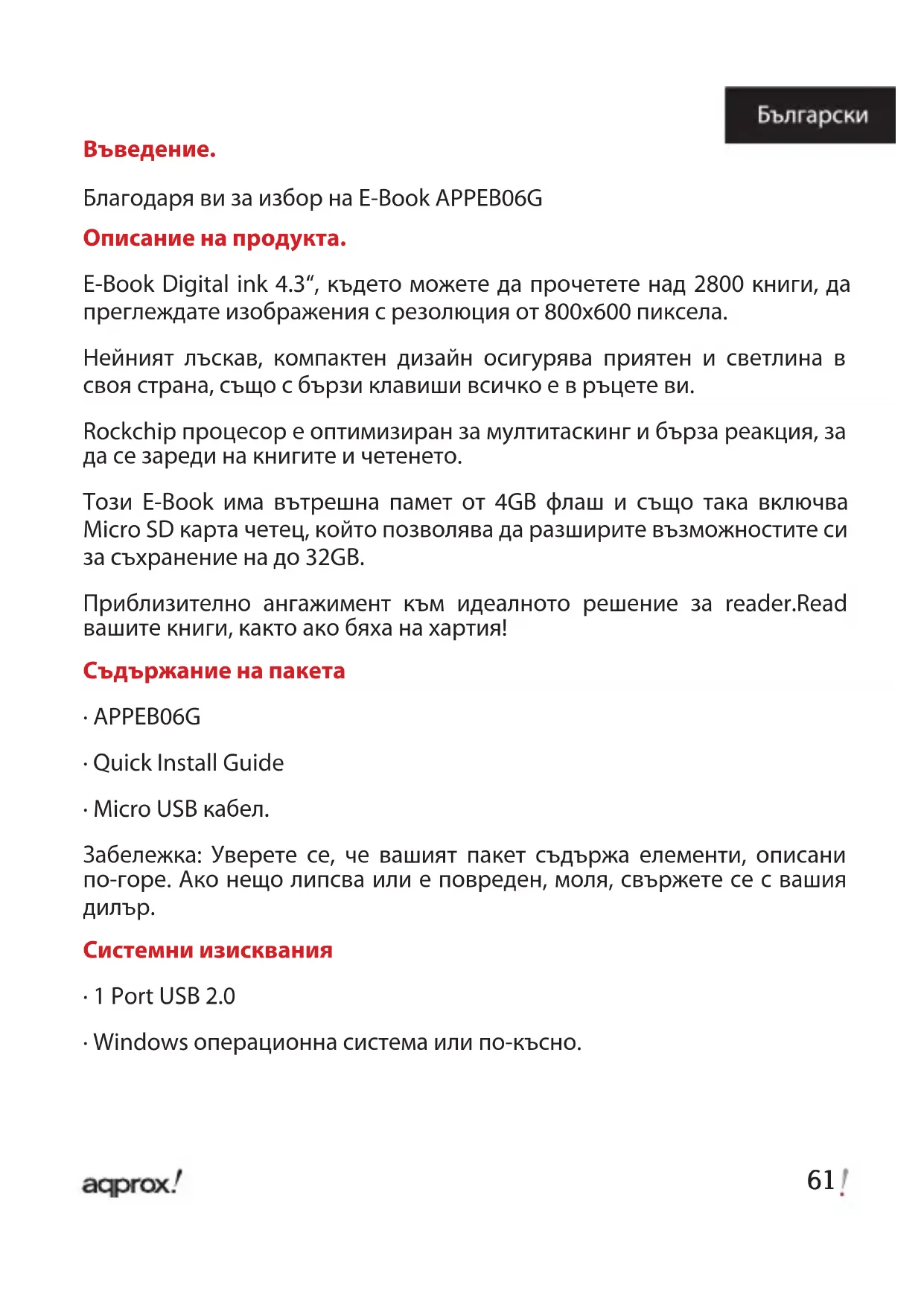 APPEB06G - електронен четец Approx - Безплатно ръководство за потребителя