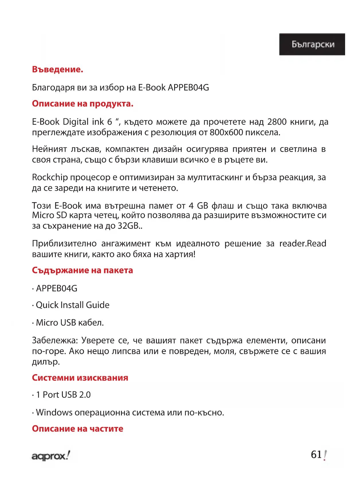 APPEB04G - електронен четец Approx - Безплатно ръководство за потребителя