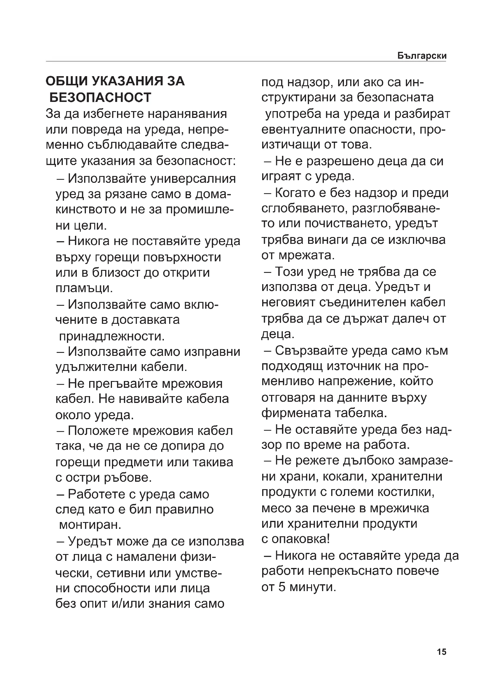 ОБЩИ УКАЗАНИЯ ЗА БЕЗОПАСНОСТ За да избегнете наранявания или повреда на уреда, непре- менно съблюдавайте следва- щите указания за безопасност: – Използвайте универсалния уред за рязане само в дома- кинството и не за промишле-
