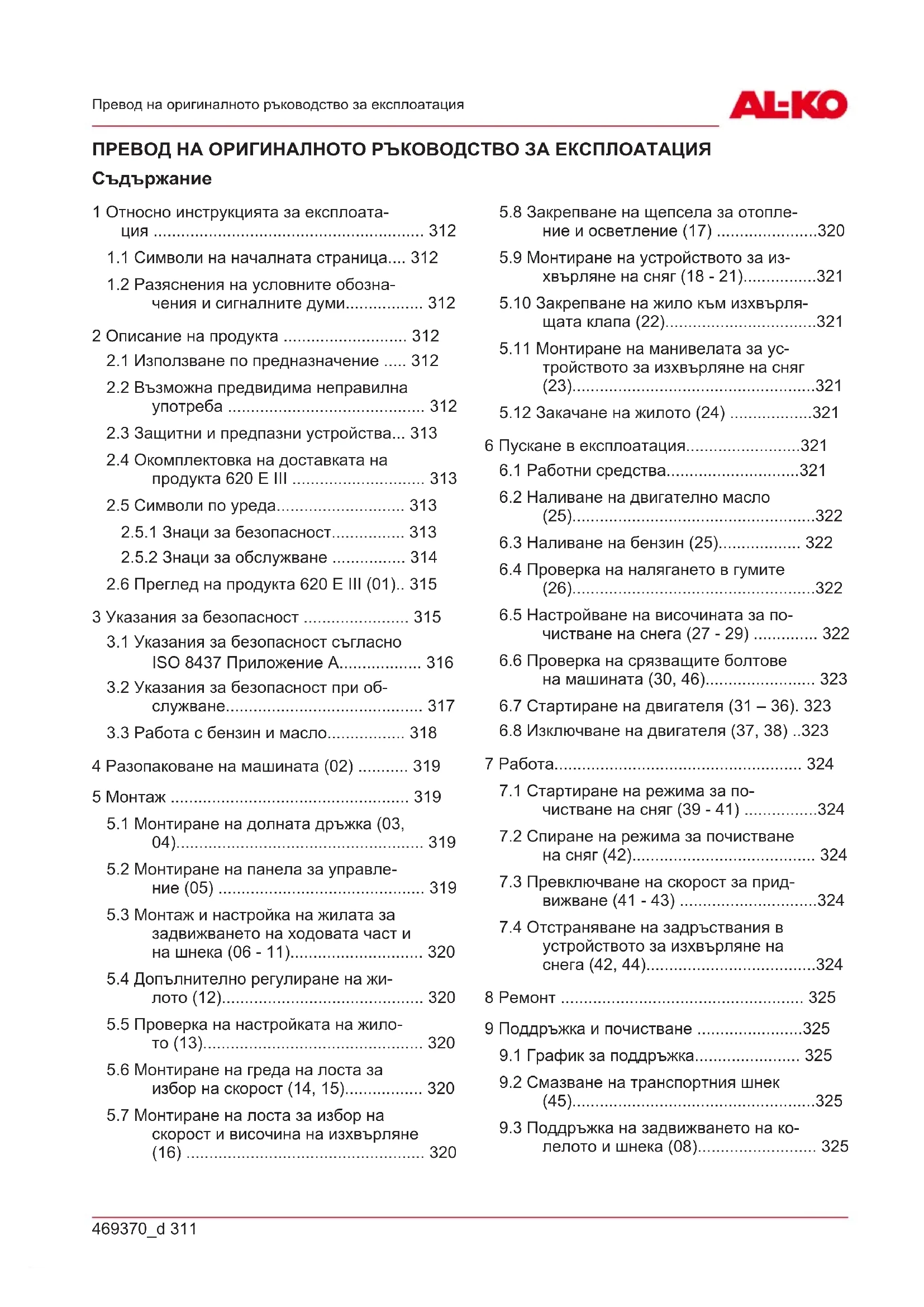 устройството за изхвърляне на снега (42, 44).....................................324 8 Ремонт ..................................................... 325 9 Поддръжка и почистване .......................325
