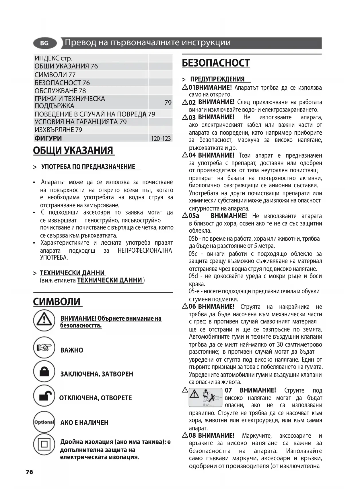 ВНИМАНИЕ: прочетете указанията преди употреба. стр. 76